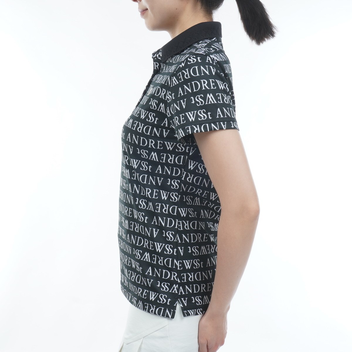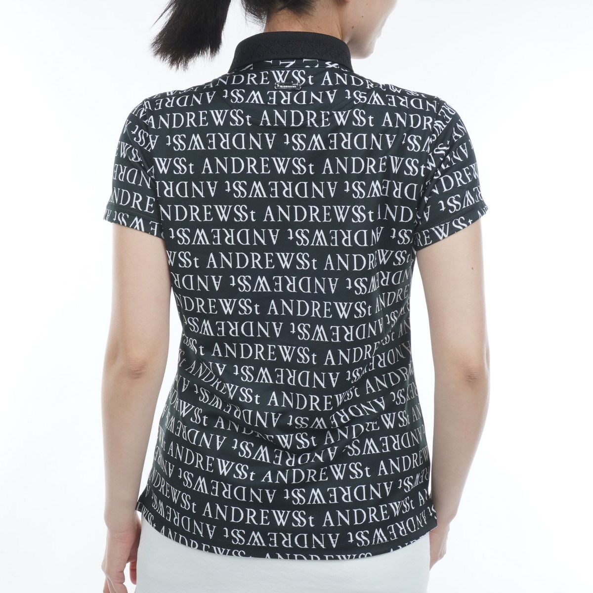 セント・アンドリュース St ANDREWS ダブルロゴジャカード半袖ポロシャツ M ブラック 010 レディス
