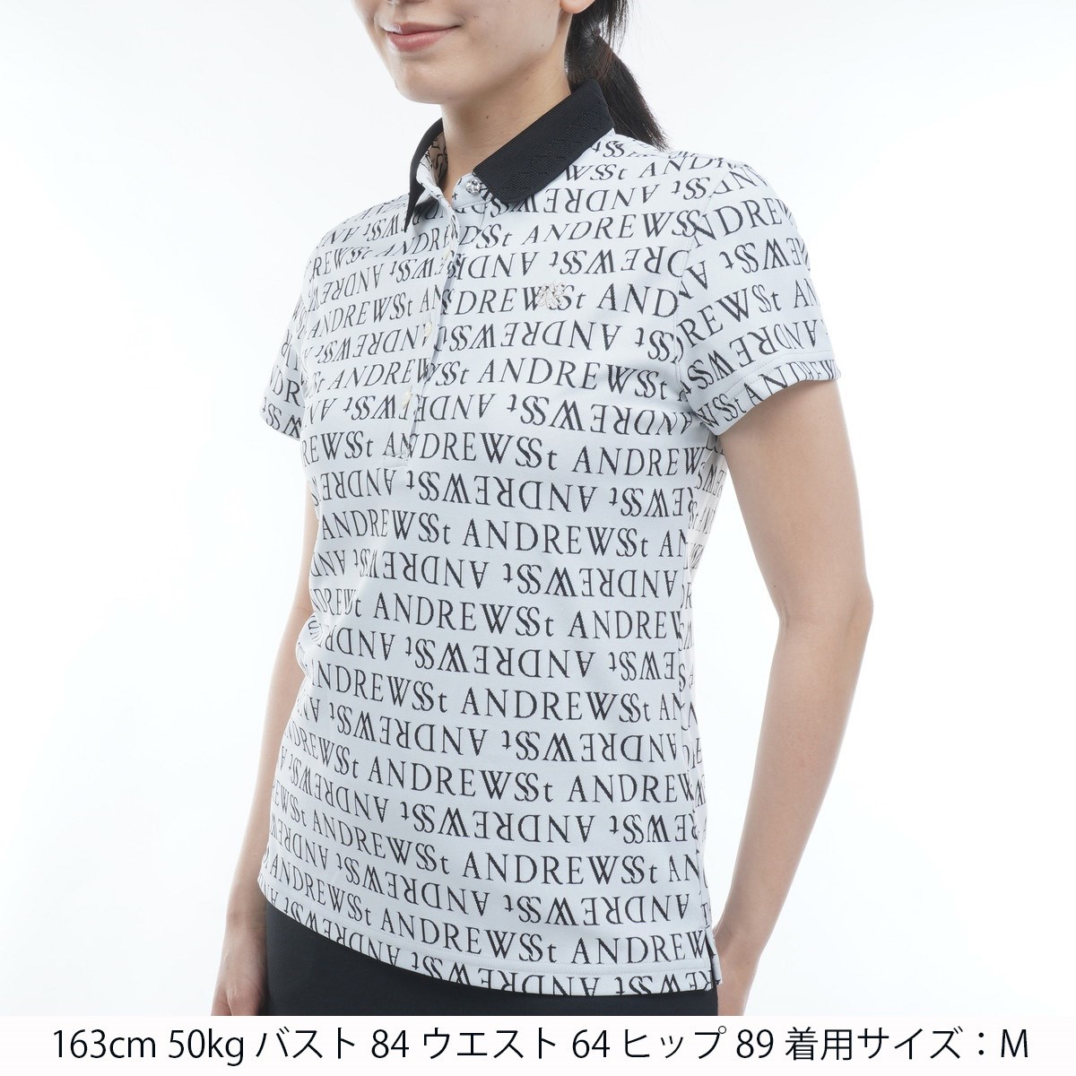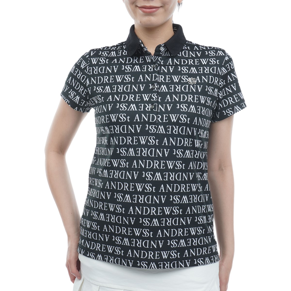 セント・アンドリュース St ANDREWS ダブルロゴジャカード半袖ポロシャツ L ホワイト 030 レディス