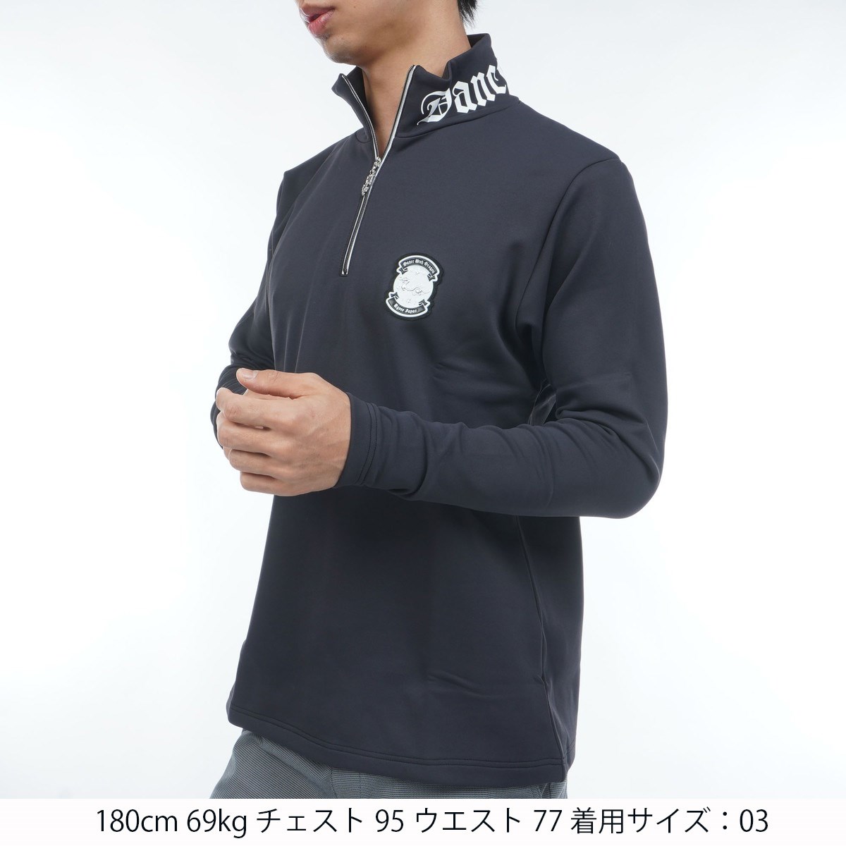 ダンスウィズドラゴン Dance With Dragon KARUISHI 裏起毛 ハーフジップモックネック長袖シャツ 04 ブラック 019