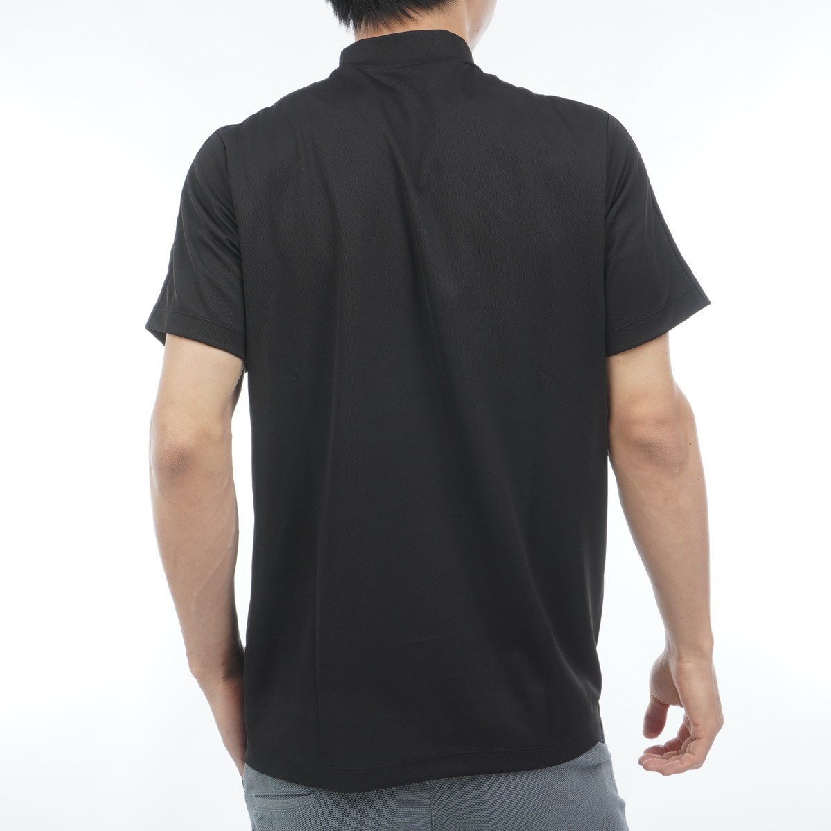 吸水速乾と通気性に優れた鹿の子を使用したベーシックなシルエットの半袖モックネックシャツ。