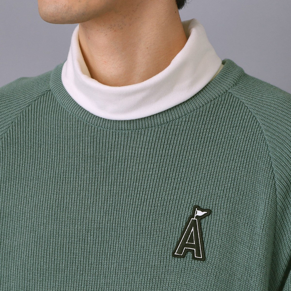 スウィング時に摩擦が発生しやすい脇下から袖下にかけて、ミニリップストップ素材を畔編みニットの上に重ねることで強度をアップさせたデザインです。