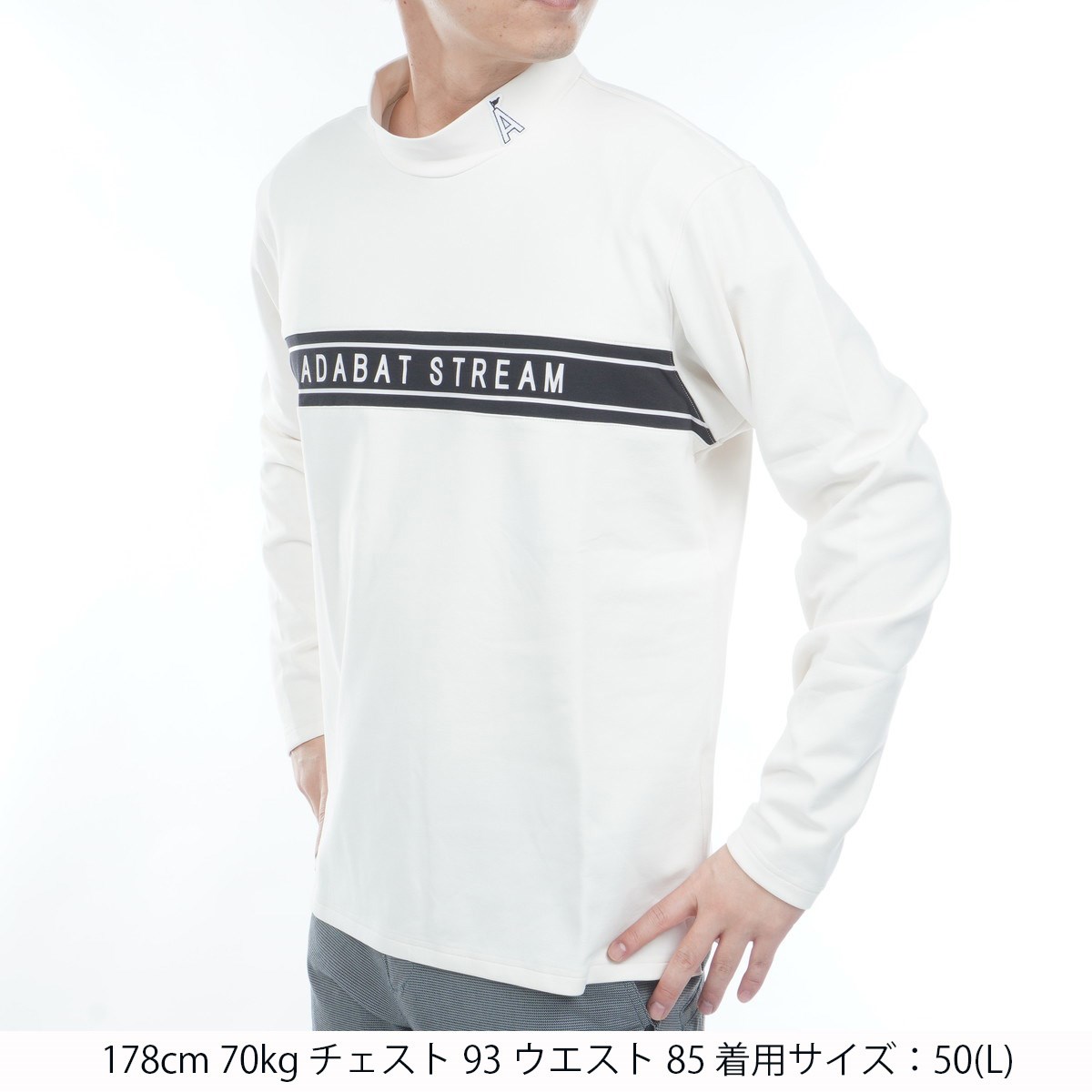 アダバットストリーム ADABAT STREAM ストレッチ フロントロゴモックネック長袖Tシャツ 52(LL) ホワイト 002