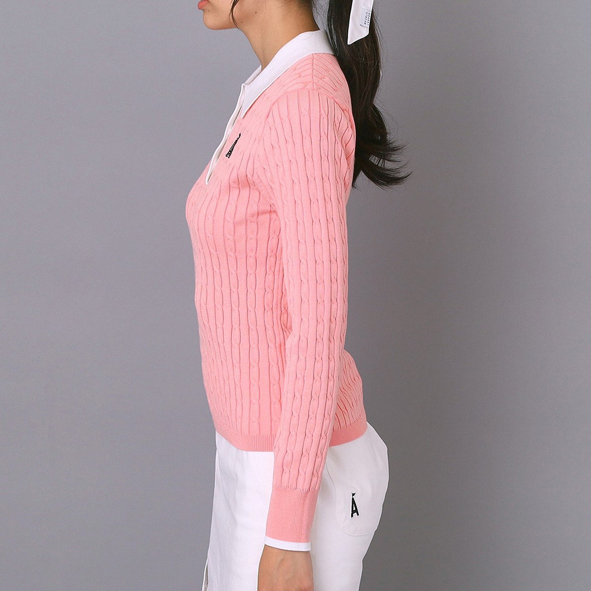 アダバットストリーム ADABAT STREAM ケーブルニットクレリック長袖ポロシャツ 40(L) ピンク 071 レディス