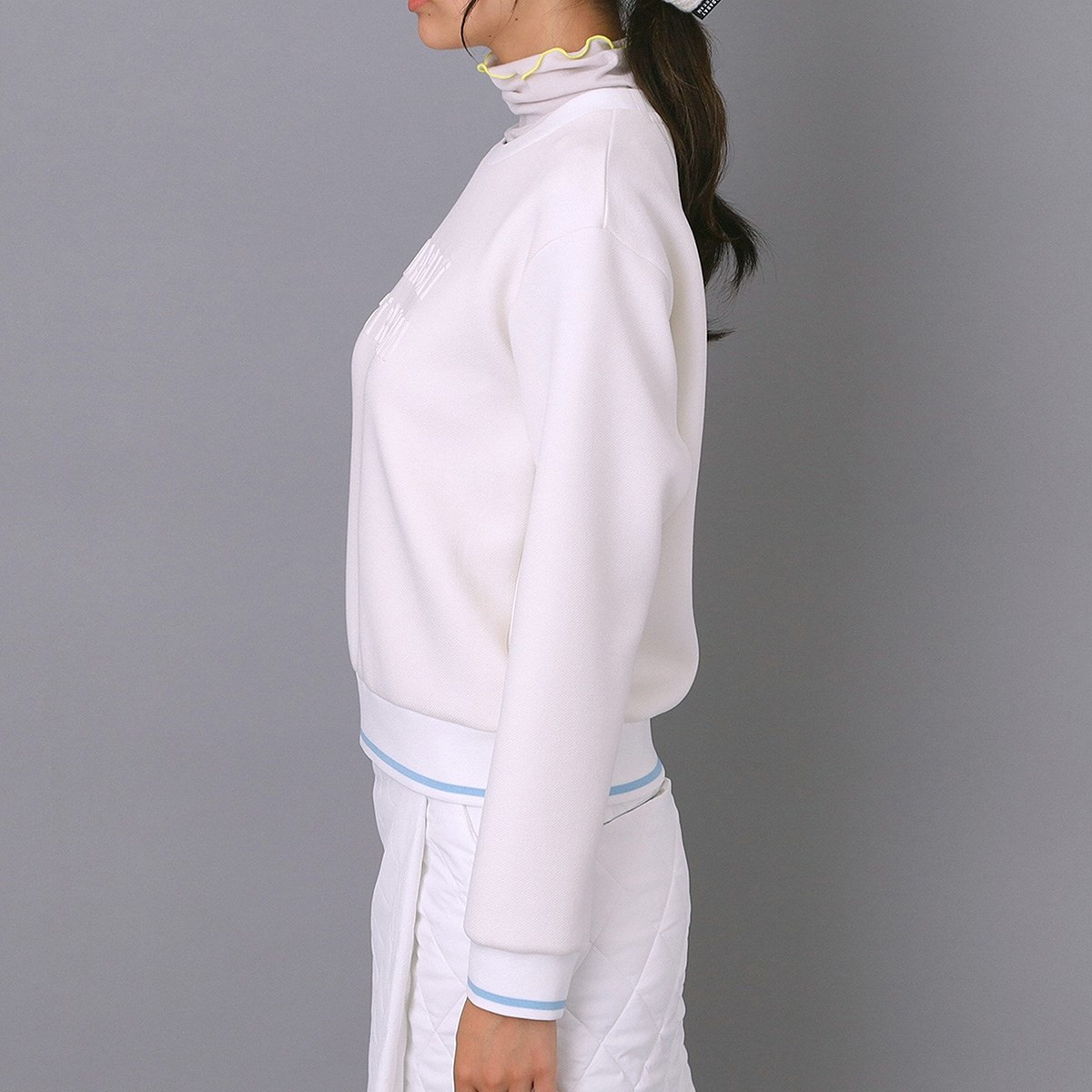 裾と袖に施されたライン入りの配色リブが、スポーティーで洗練された印象を与え、胸元には立体的なエンボスロゴがさりげなくアクセントを加えています。