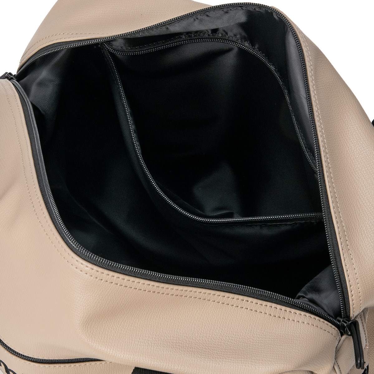 正面にファスナーポケット、内装には2分割のベタポケットを配置。