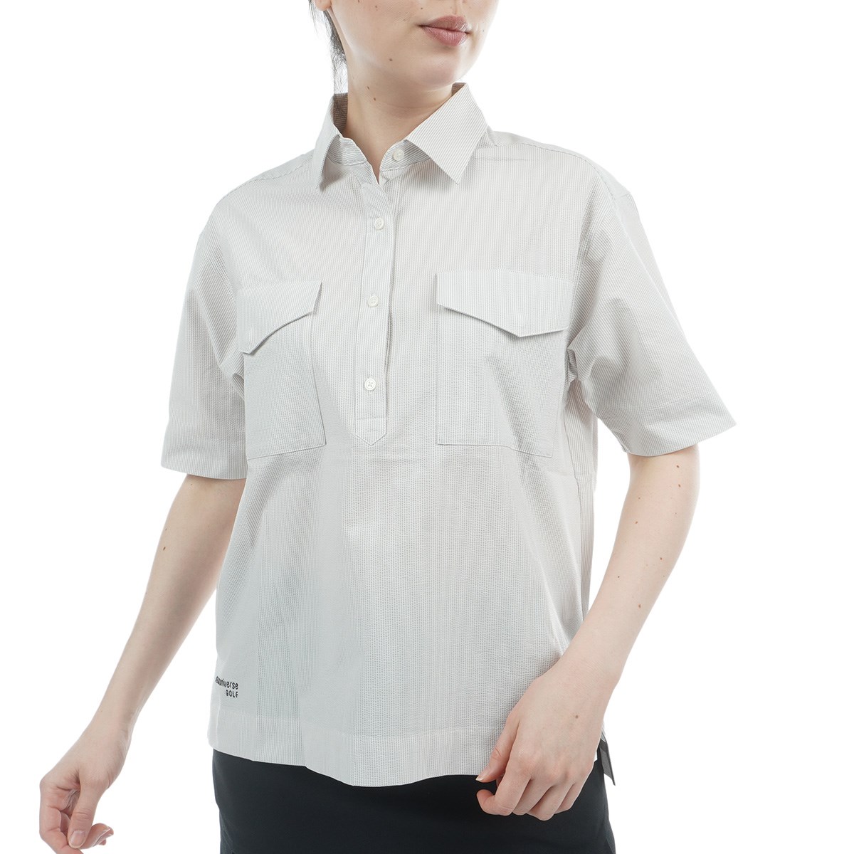 ビーツ・パー・ミニット NANO universe GOLF サッカーストライプ 半袖ポロシャツ M ストライプ 021 レディス