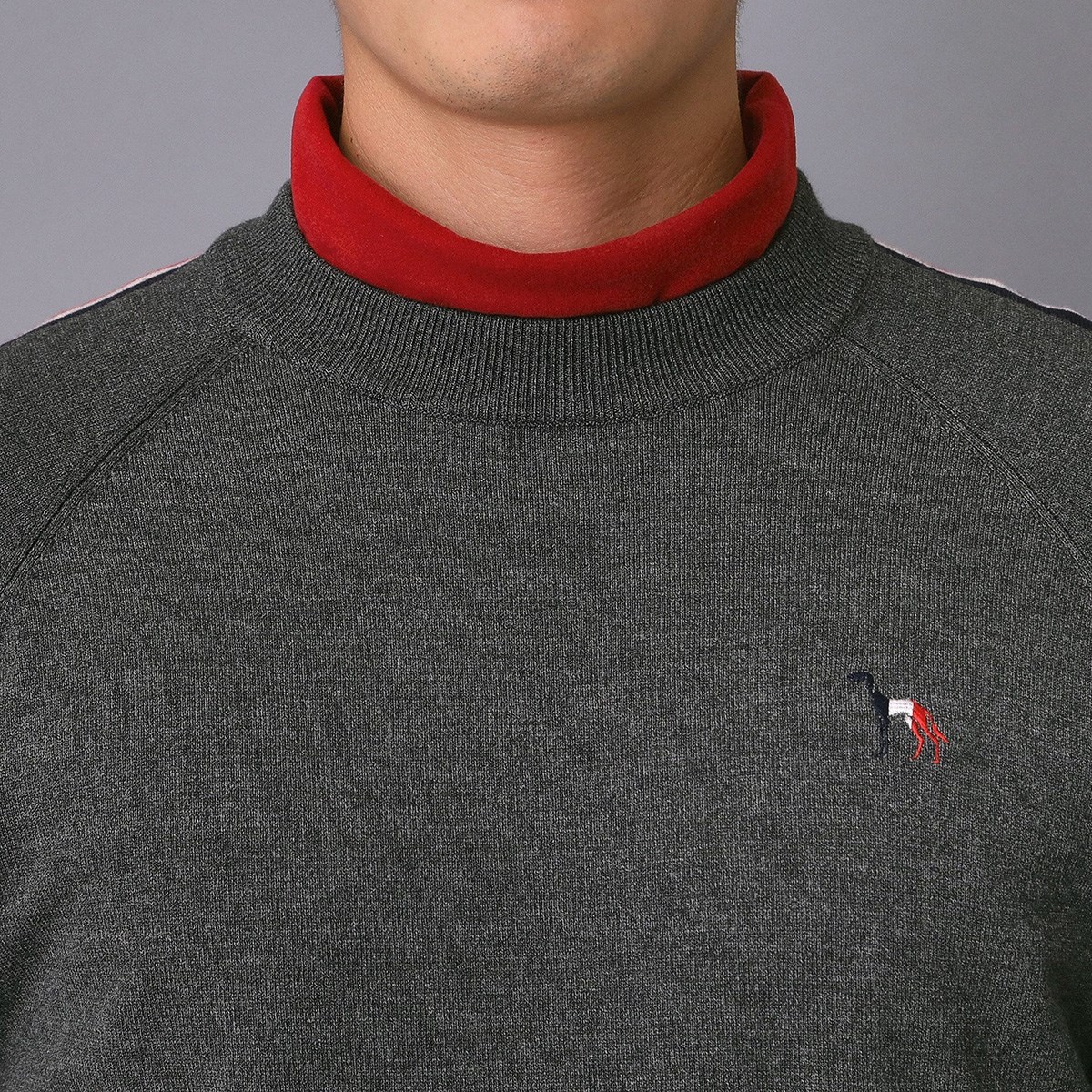 【袖のトリコロールラインが際立つセミモックネックセーター】