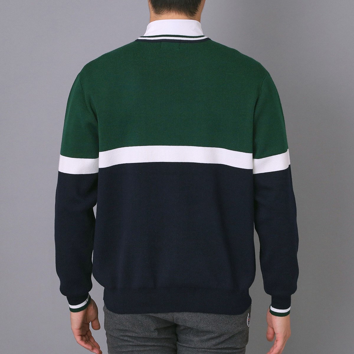アダバットネイビー ADABAT NAVY ストレッチ トリコロールクルーネックセーター 50(L) グリーン 022