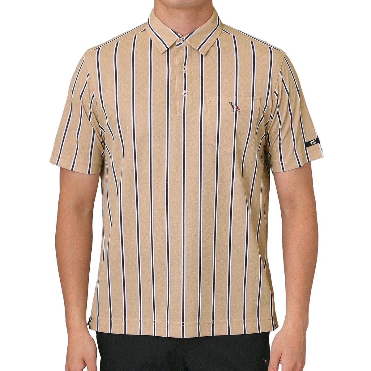 アダバットネイビー ADABAT NAVY 吸水速乾 UVカット ワインシャンブレーストライプ半袖ポロシャツ 50(L) ライトベージュ 351