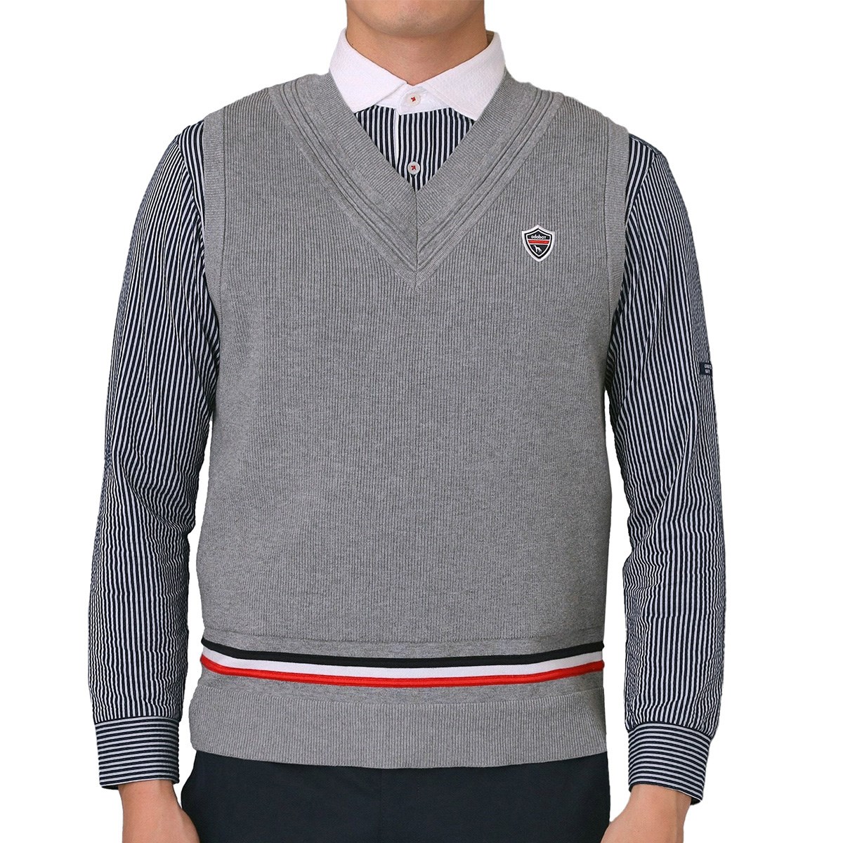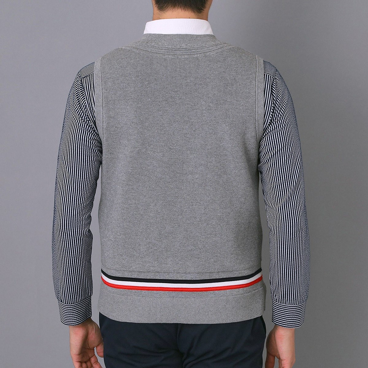 【配色ラインとリラックスフィットでモダンに仕上げたチルデンベスト】