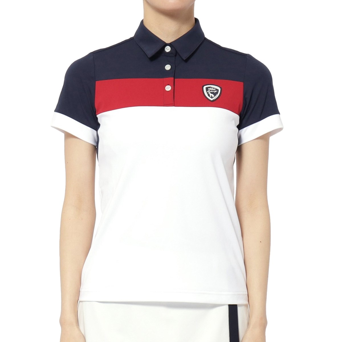 アダバットネイビー ADABAT NAVY UVカット 吸水速乾 カラーブロック半袖ポロシャツ 36(S) ブラック 019 レディス