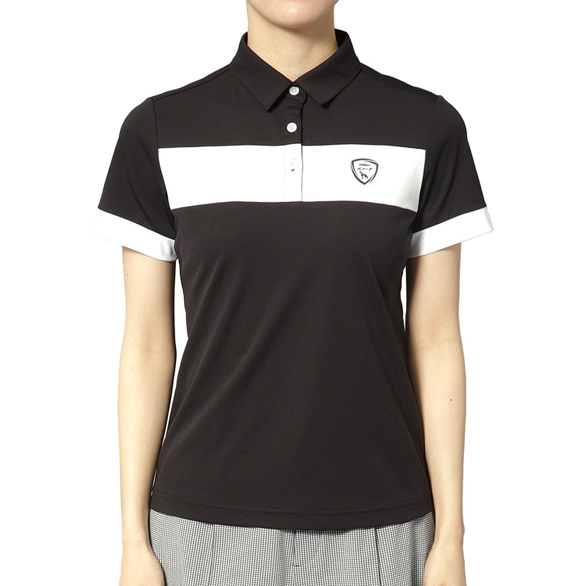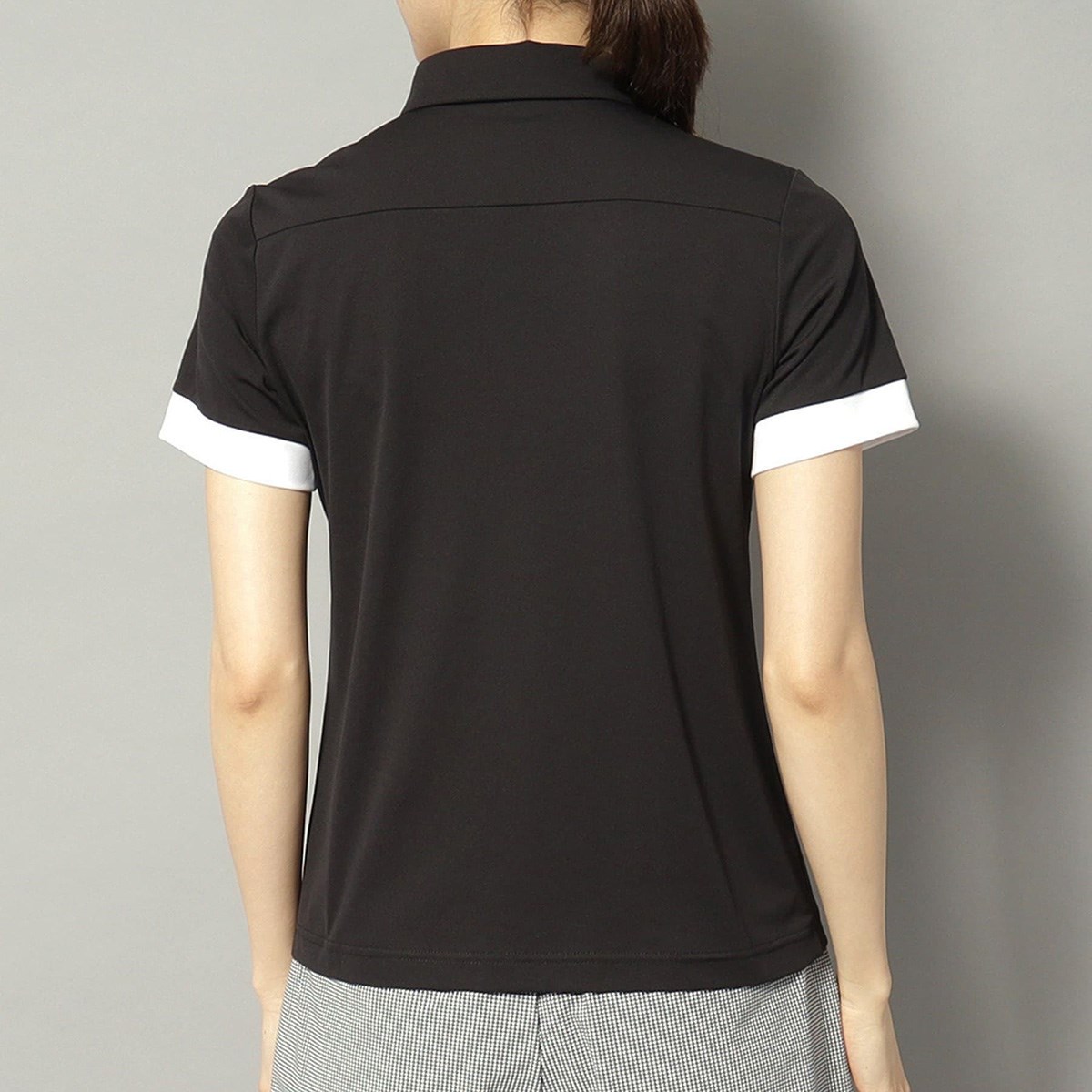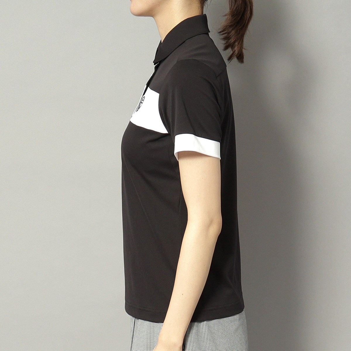 胸元の切り替えデザインがシンプルながらも洗練された印象を与える半袖ポロシャツです。