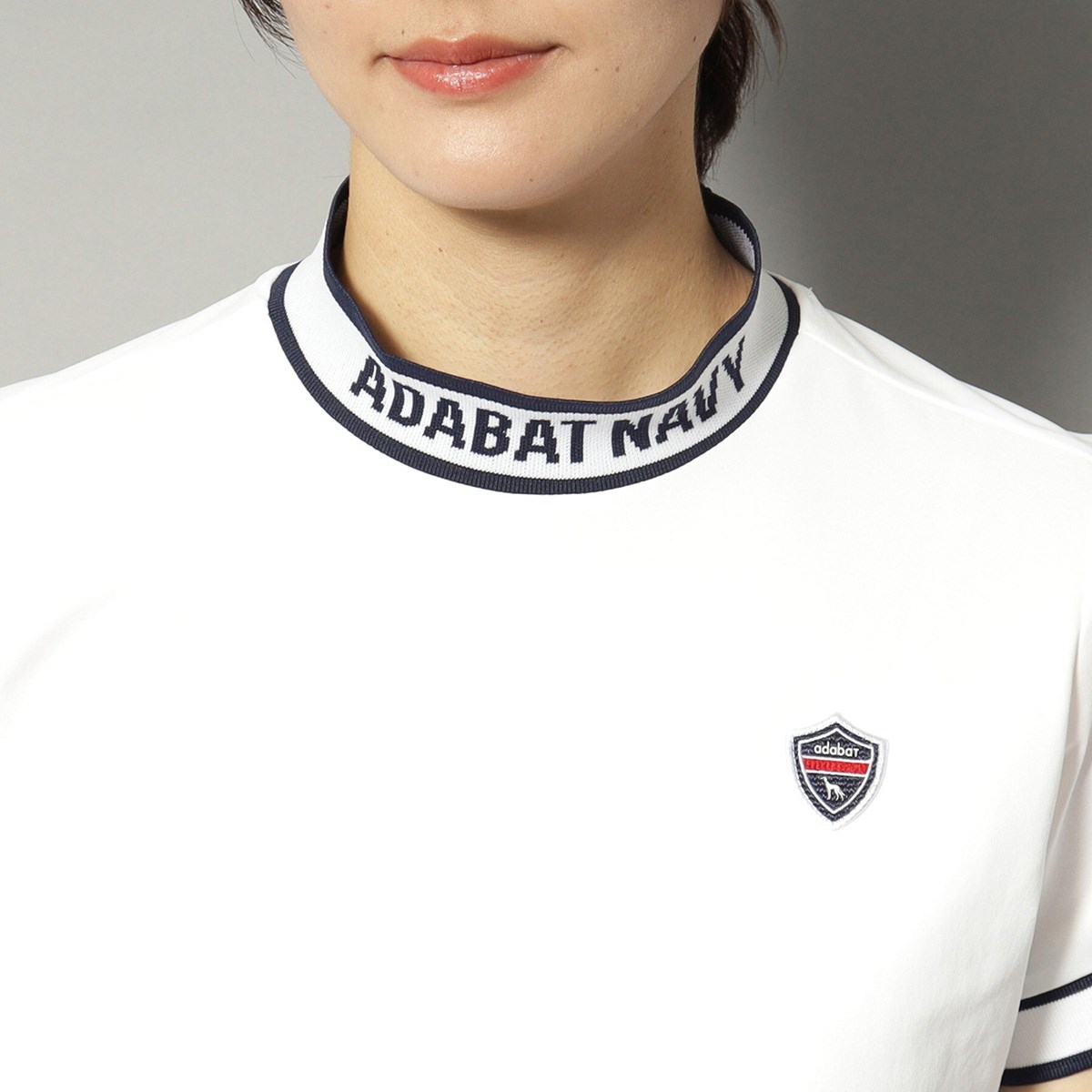アダバットネイビー ADABAT NAVY UVカット 吸水速乾 ラインリブモックネック半袖Tシャツ 36(S) ホワイト 001 レディス