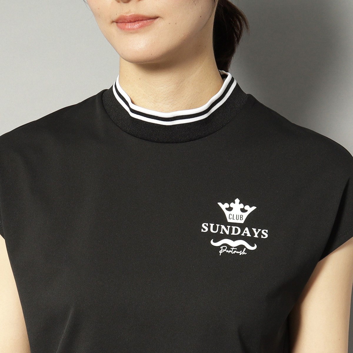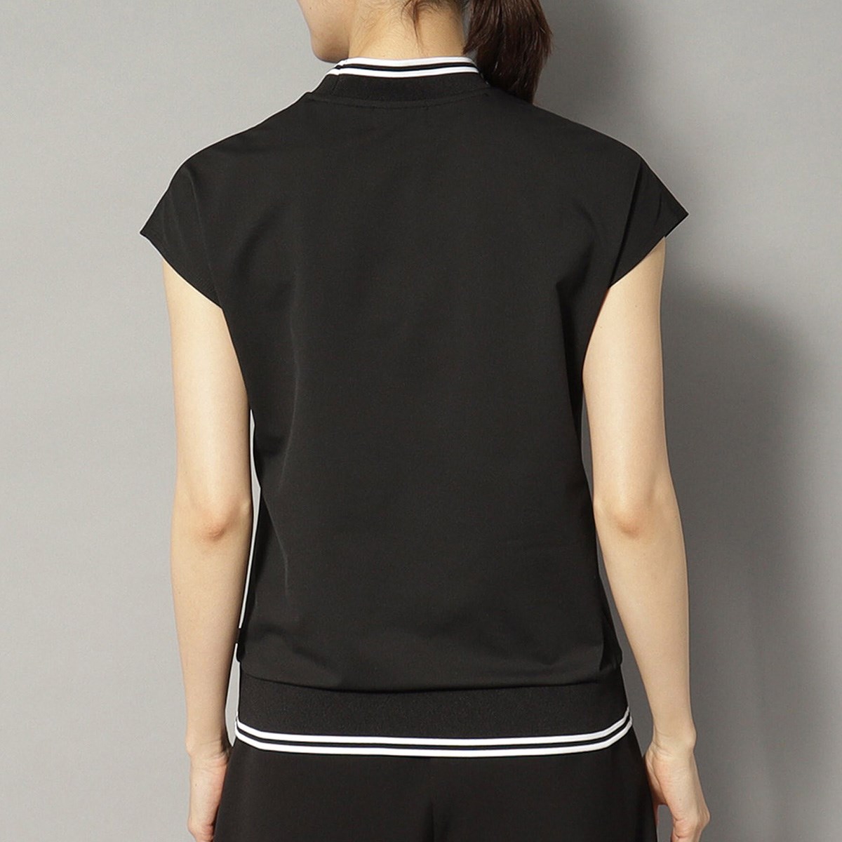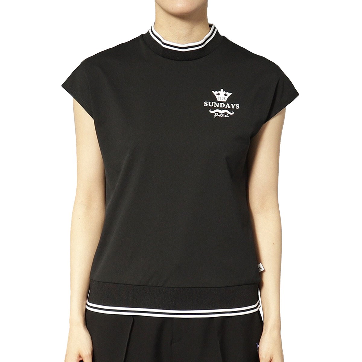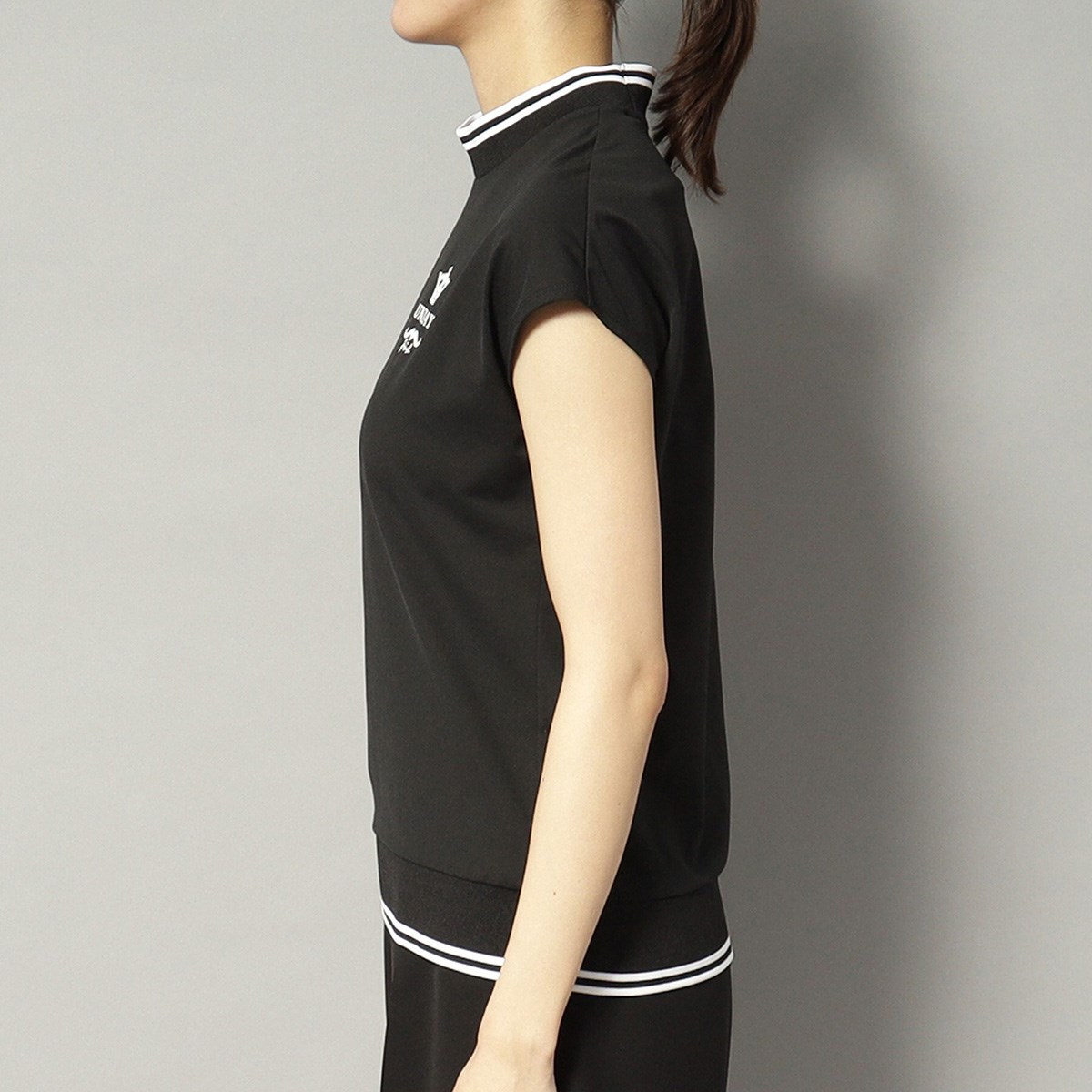 女性らしく上品なフレンチスリーブが特徴のモックネックプルオーバーです。