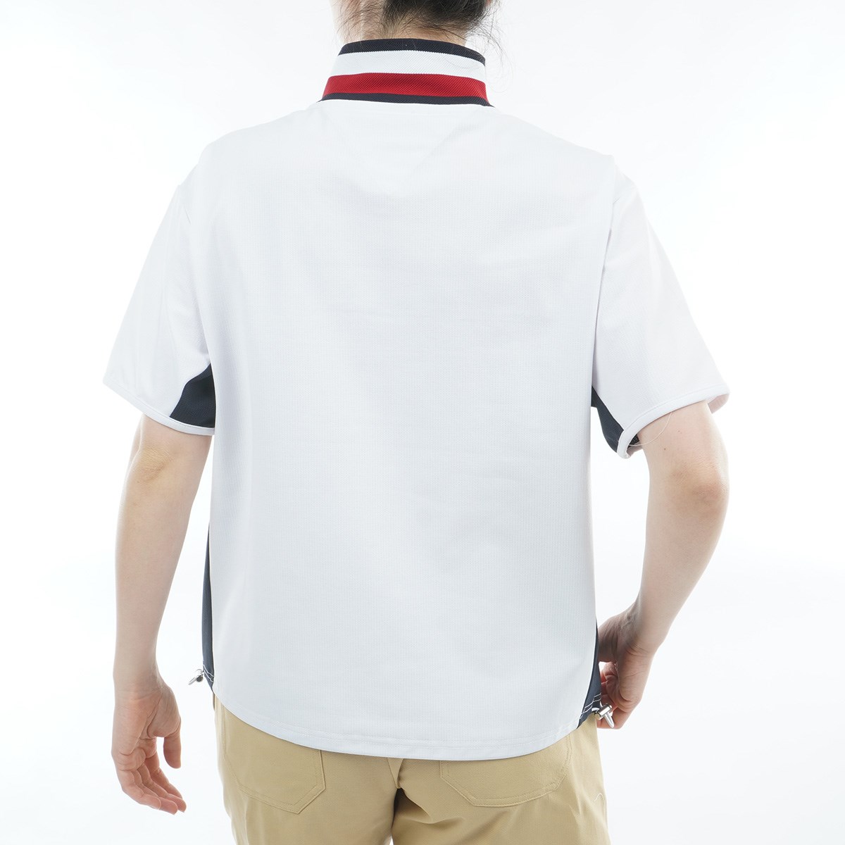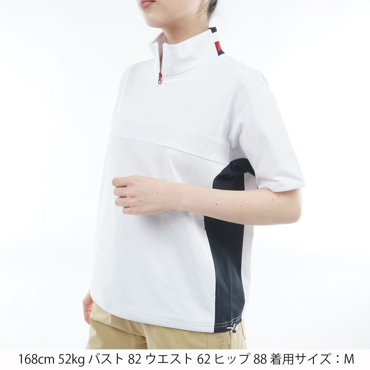 トミー ヒルフィガー ゴルフ TOMMY HILFIGER GOLF ストレッチ メッシュハーフジップ ウインド半袖プルオーバー S ホワイト レディス