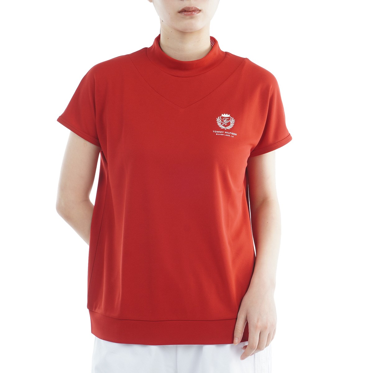 トミー ヒルフィガー ゴルフ TOMMY HILFIGER GOLF エンブレム フレンチモックネック半袖シャツ S レッド レディスのレビュー
