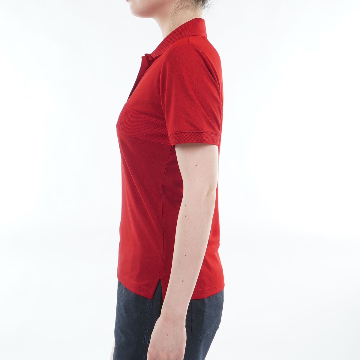 トミー ヒルフィガー ゴルフ TOMMY HILFIGER GOLF ストレッチ スタンダード ロゴ半袖ポロシャツ LL レッド レディス