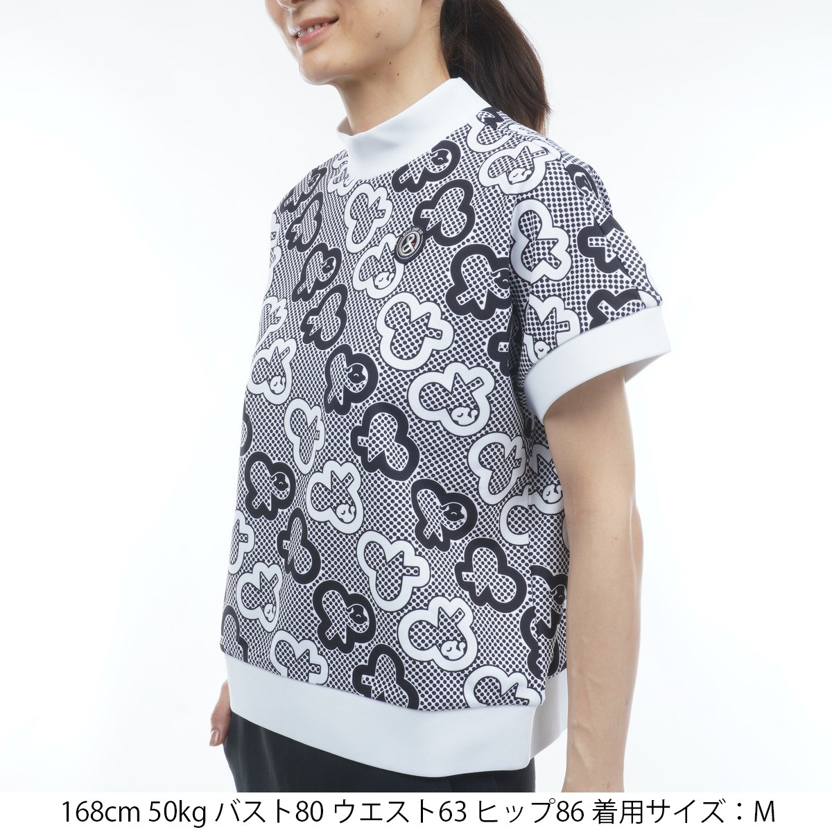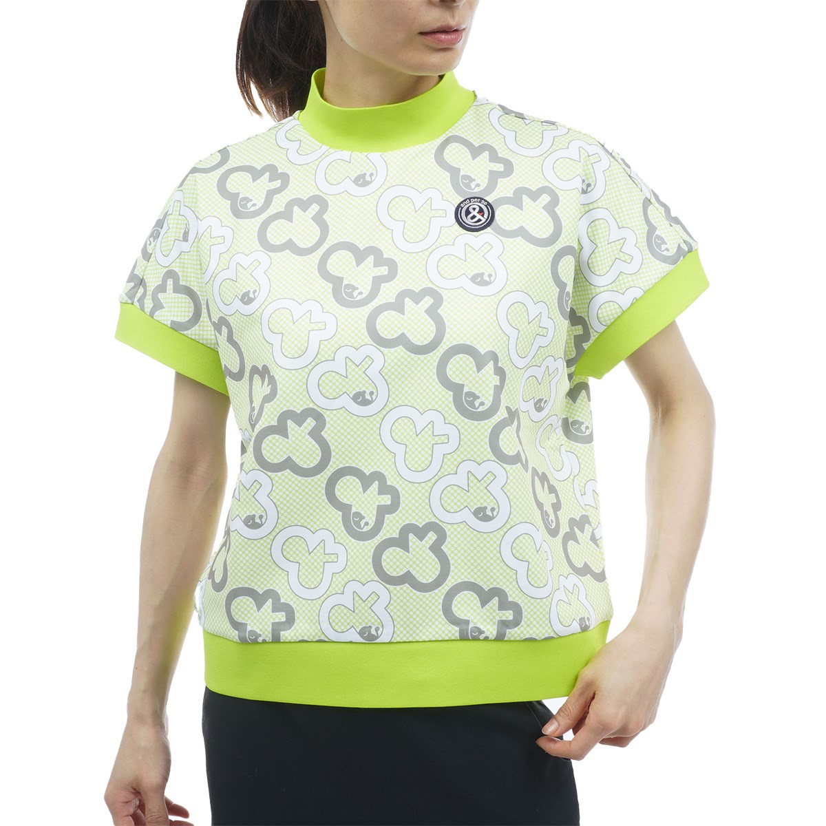 アンパスィ and per se ストレッチ ショットスムーザープリンテッドスウェットモックネック半袖シャツ LL ブラック レディス