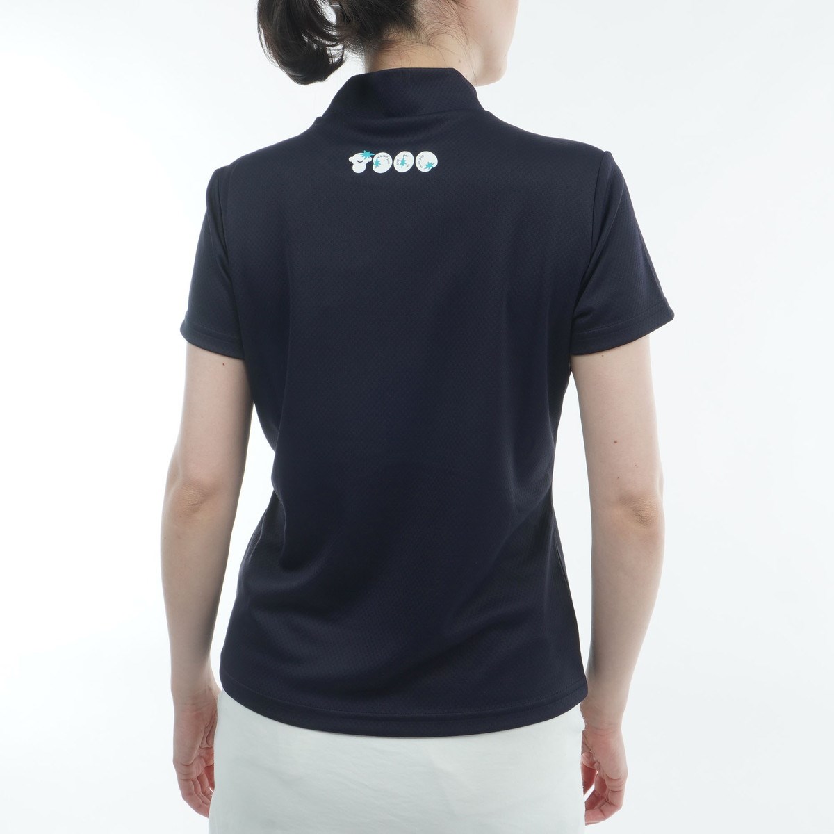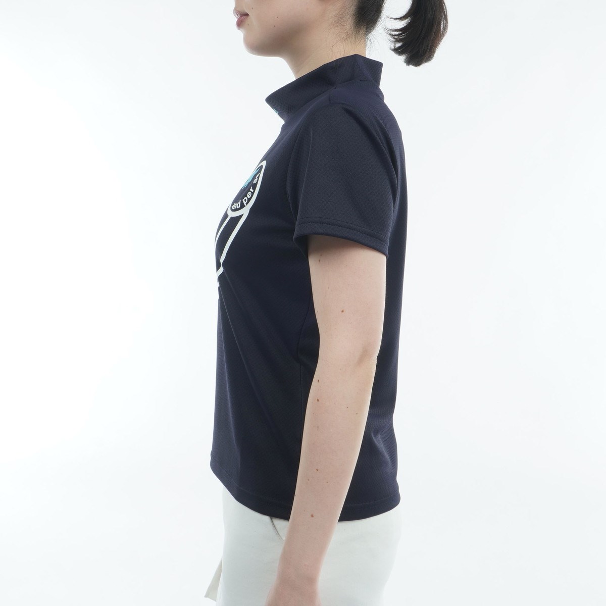 アンパスィ and per se ストレッチ COOL is COOL ディンプルモックネック半袖シャツ L ネイビー レディス