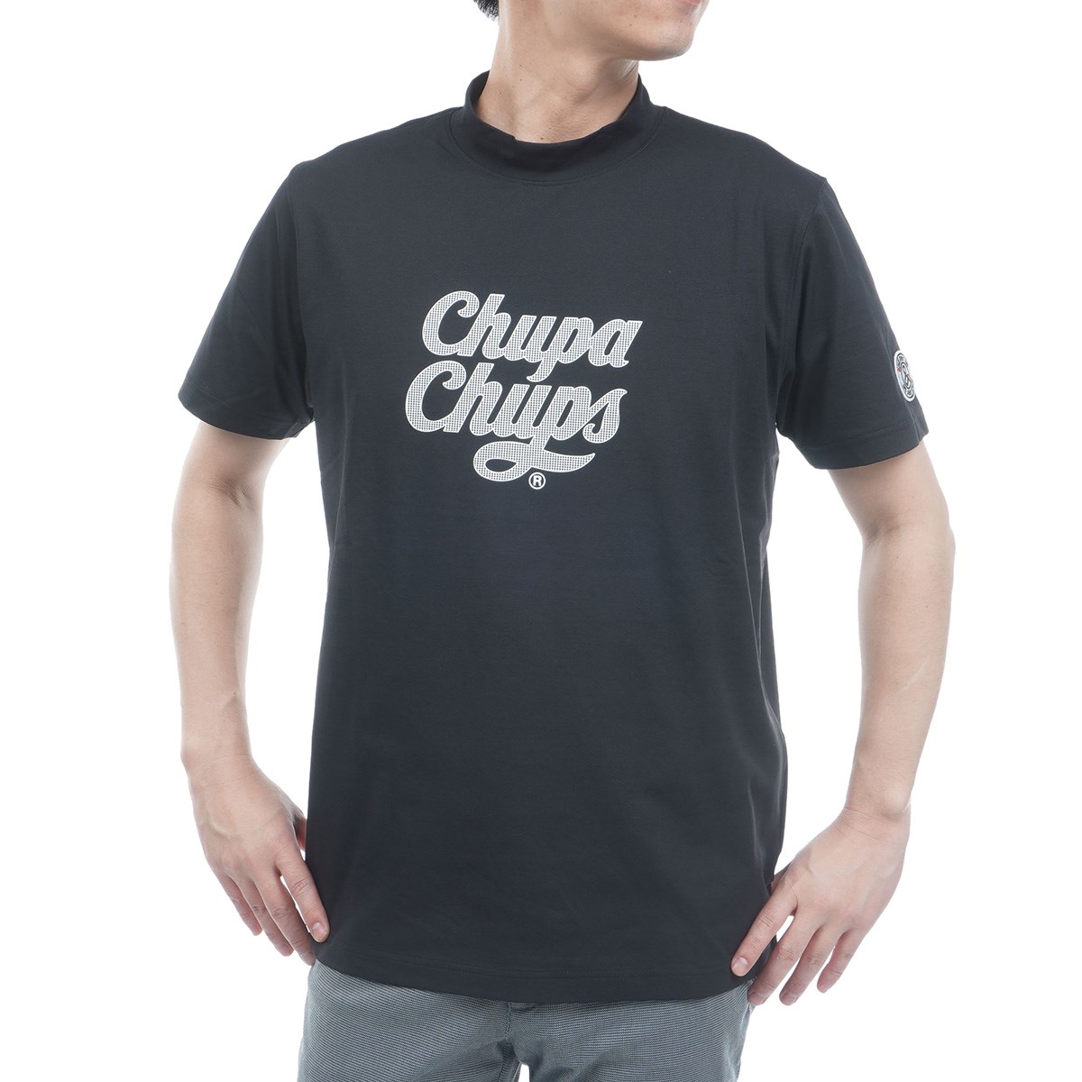 スペインで誕生したキャンディ、チュッパチャプス(chupa chups)とのコラボレーションモックネック半袖Tシャツ。