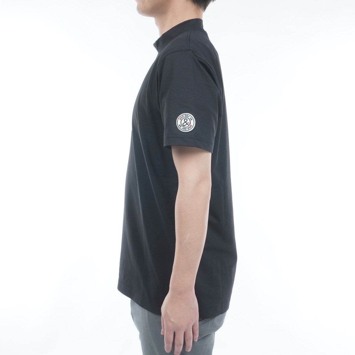 アンパスィ and per se ストレッチ チュッパチャプス モックネック半袖シャツ M ブラック