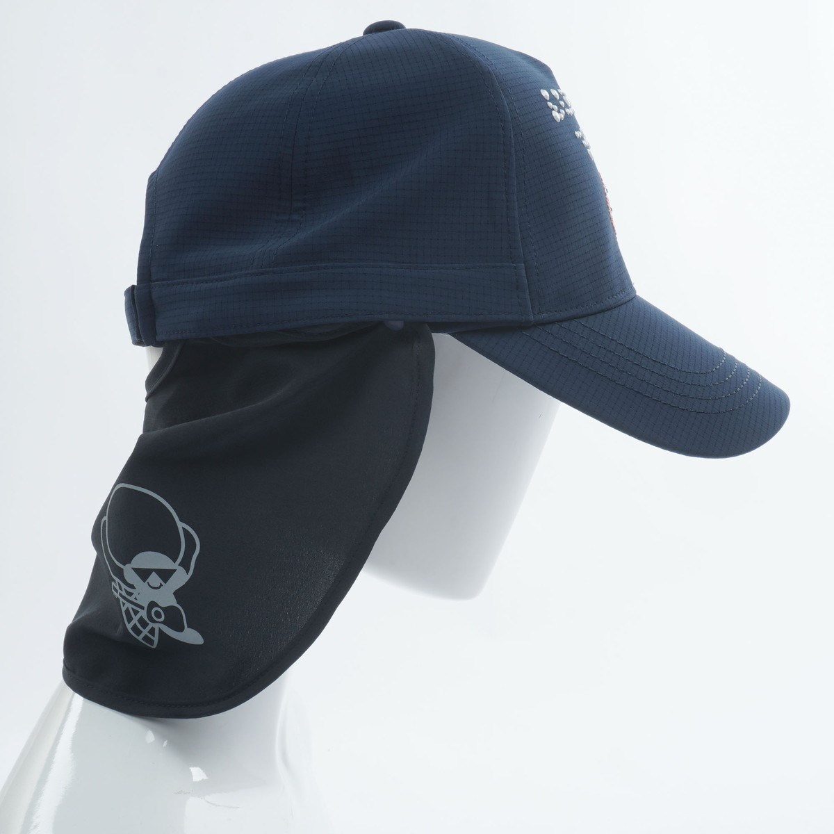 通気性のあるパンチング生地を使用したデザインキャップ。