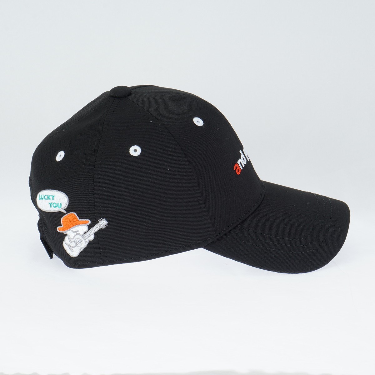 フロントのロゴに加え、後ろにはギターを弾くアンパンジーの刺繍がとってもキュートなデザイン。