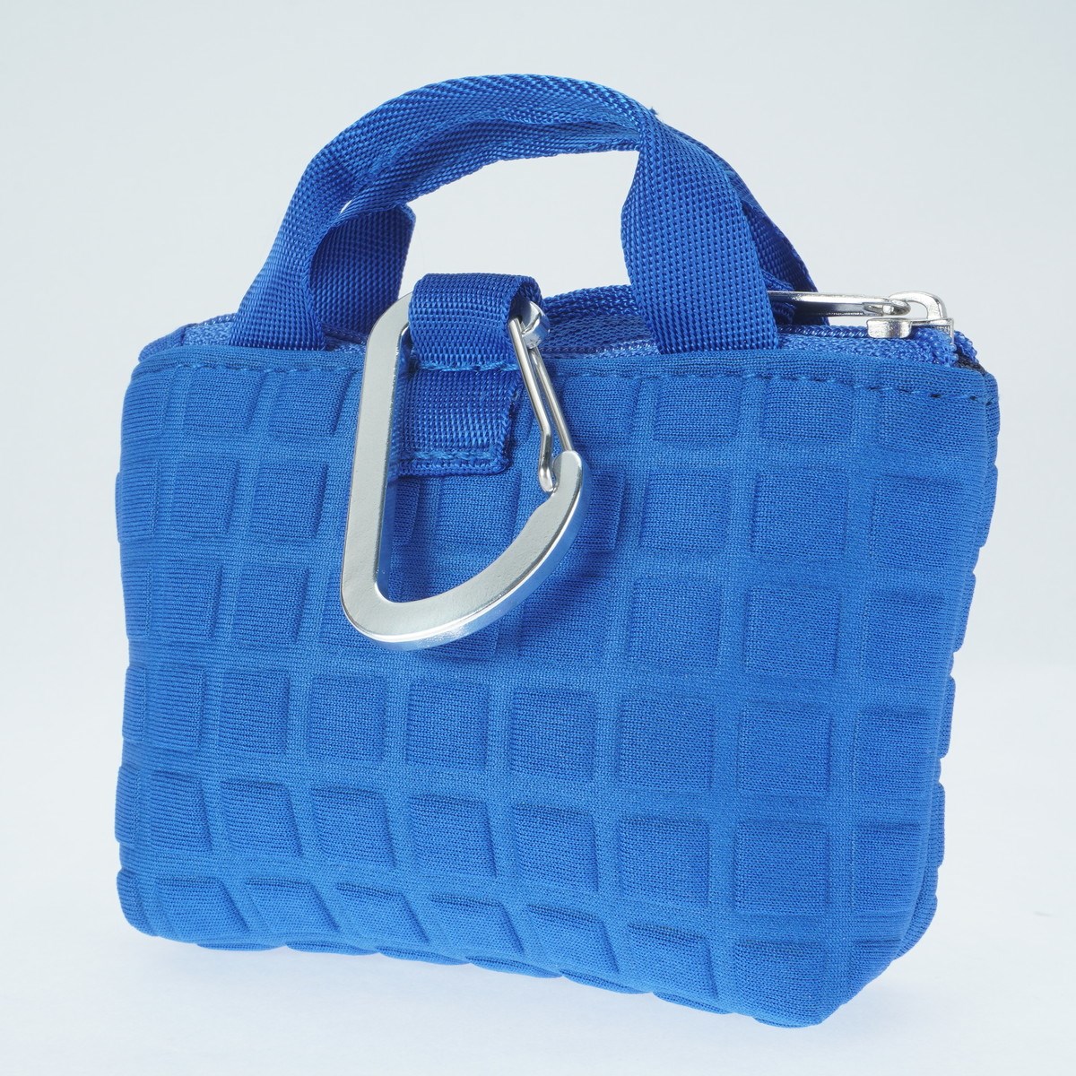 柔軟性、クッション性に優れた生地に格子柄のエンボス加工を施したボールポーチ。