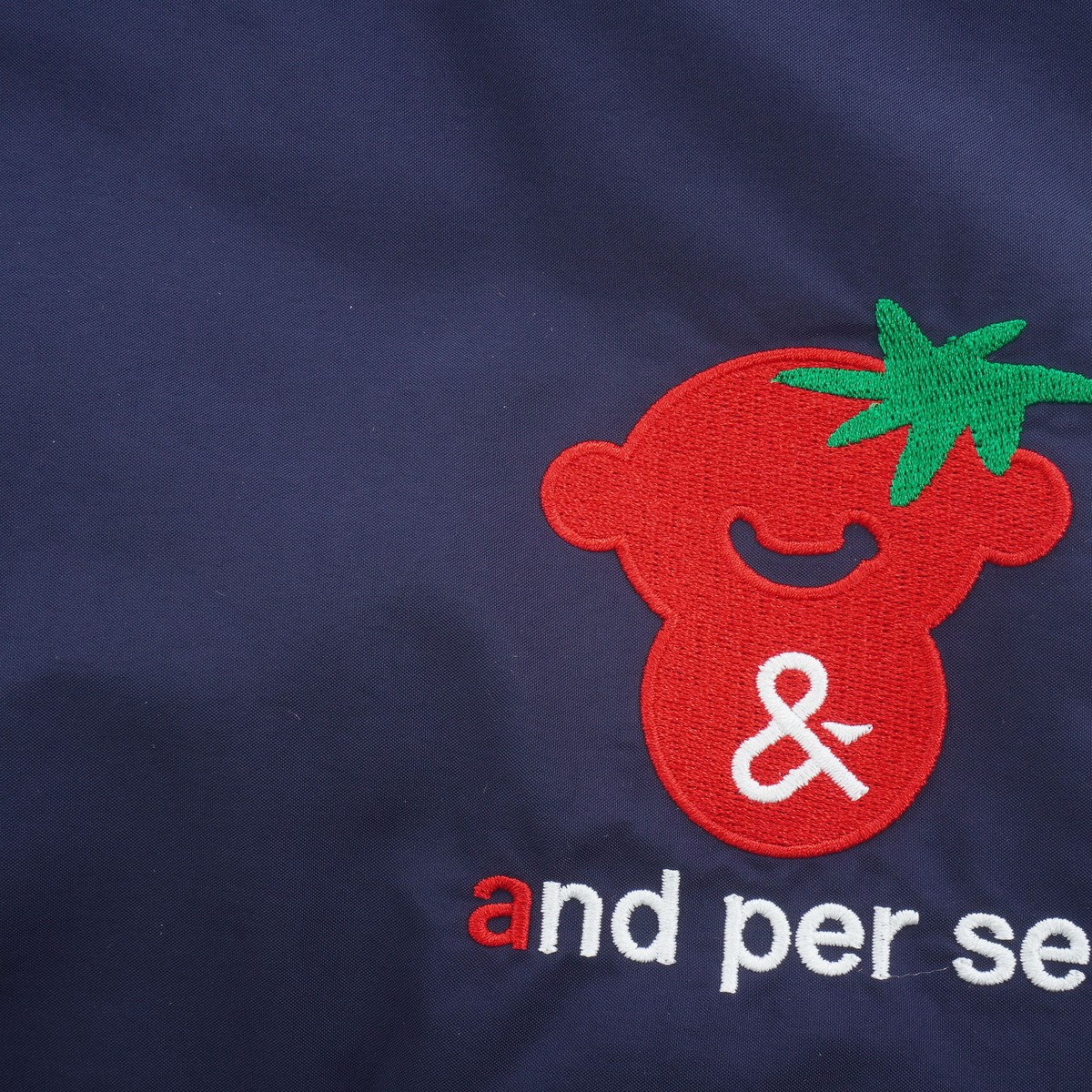 トマトアンパンジーとロゴ刺繍が目を引くデザイン。