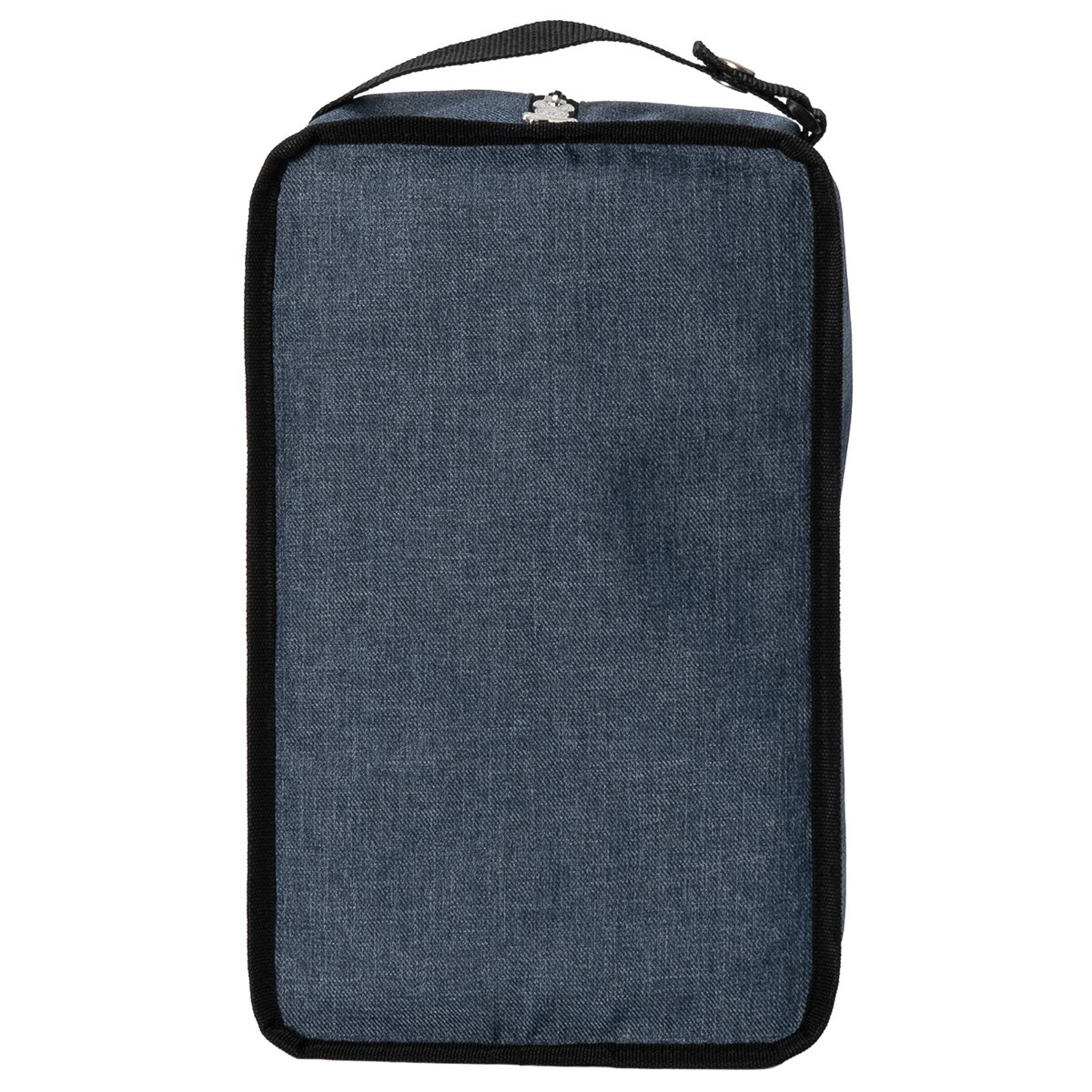 ブラックとブルーのデニムライクなポリエステル生地を使用したカジュアルでライトなシューズケース。
