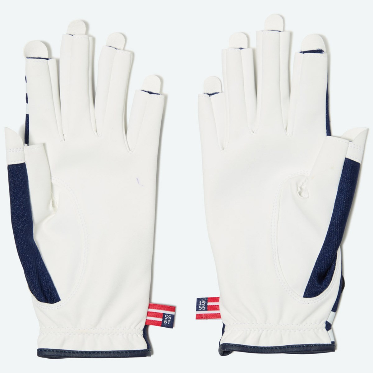 ・指先が開いたネイルフリー仕様で、爪を気にせず使用できる両手用ゴルフグローブです。