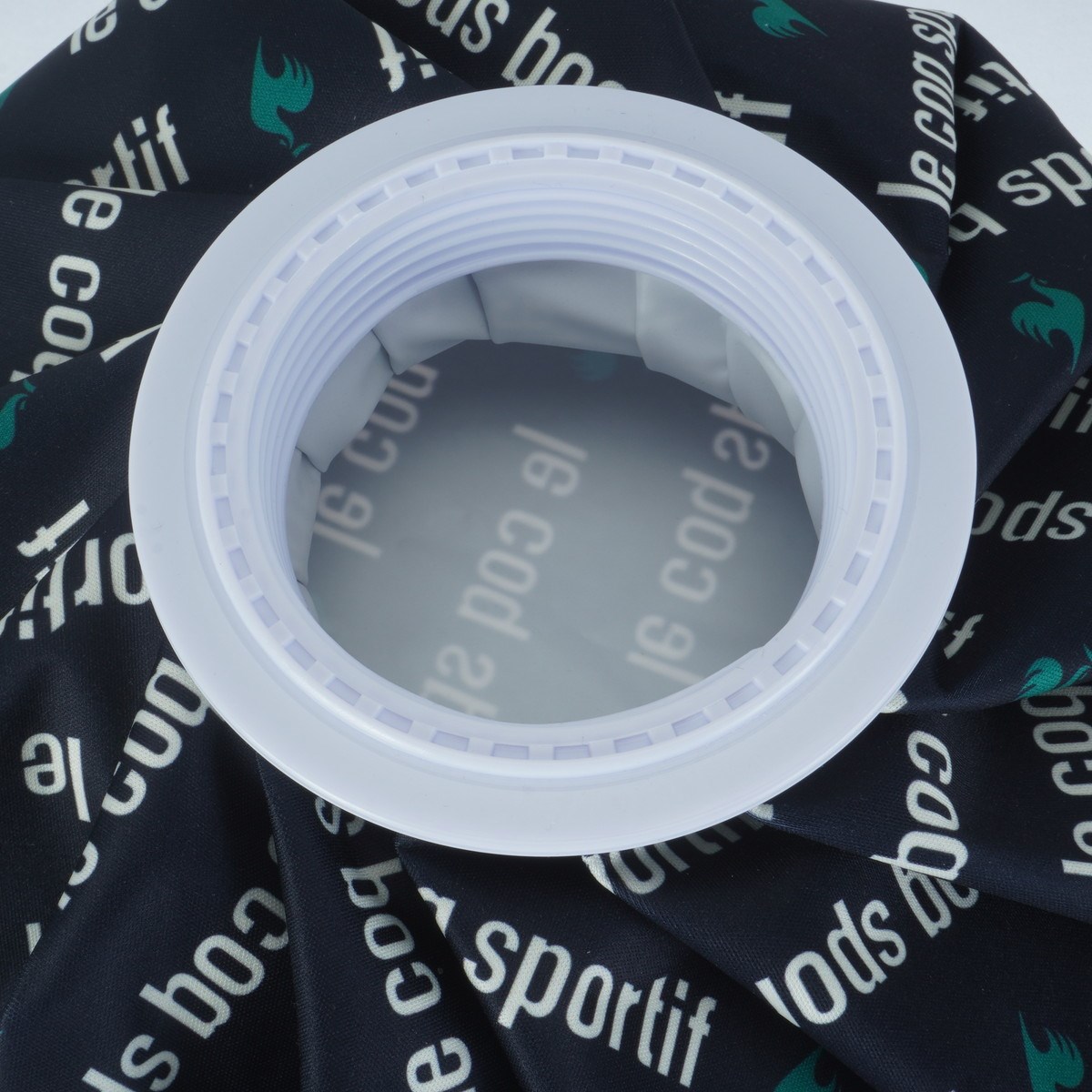 大胆なロゴがプリントされたアイスパック(氷のう)。