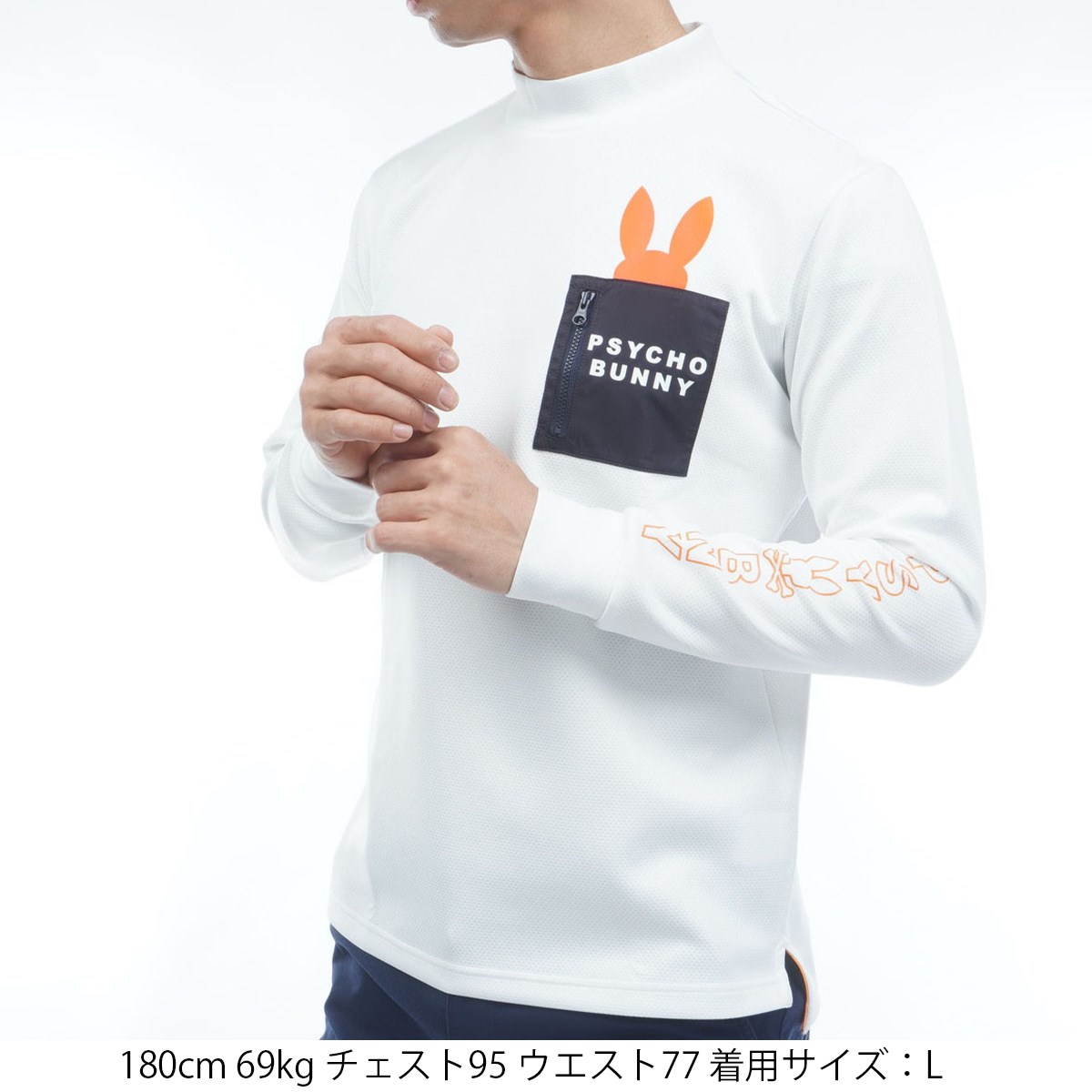 サイコバニー PSYCHO BUNNY GOLF アームロゴ ポケットバニーモックネック長袖Tシャツ XL ホワイト