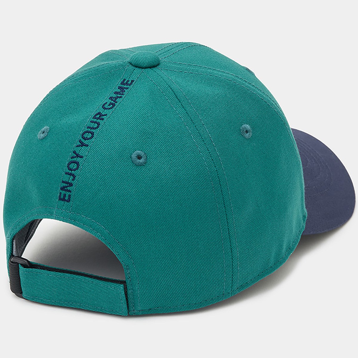 後ろにさりげなく入った「ENJOY YOUR GAME」の刺繍がゴルフスタイルのアクセントに。