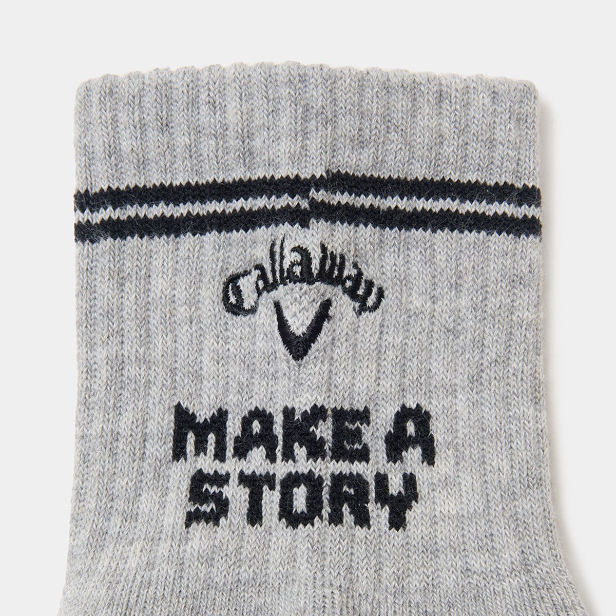 創業者イリー・キャロウェイの言葉「MAKE A STORY」をジャカードで表現したショートソックス。