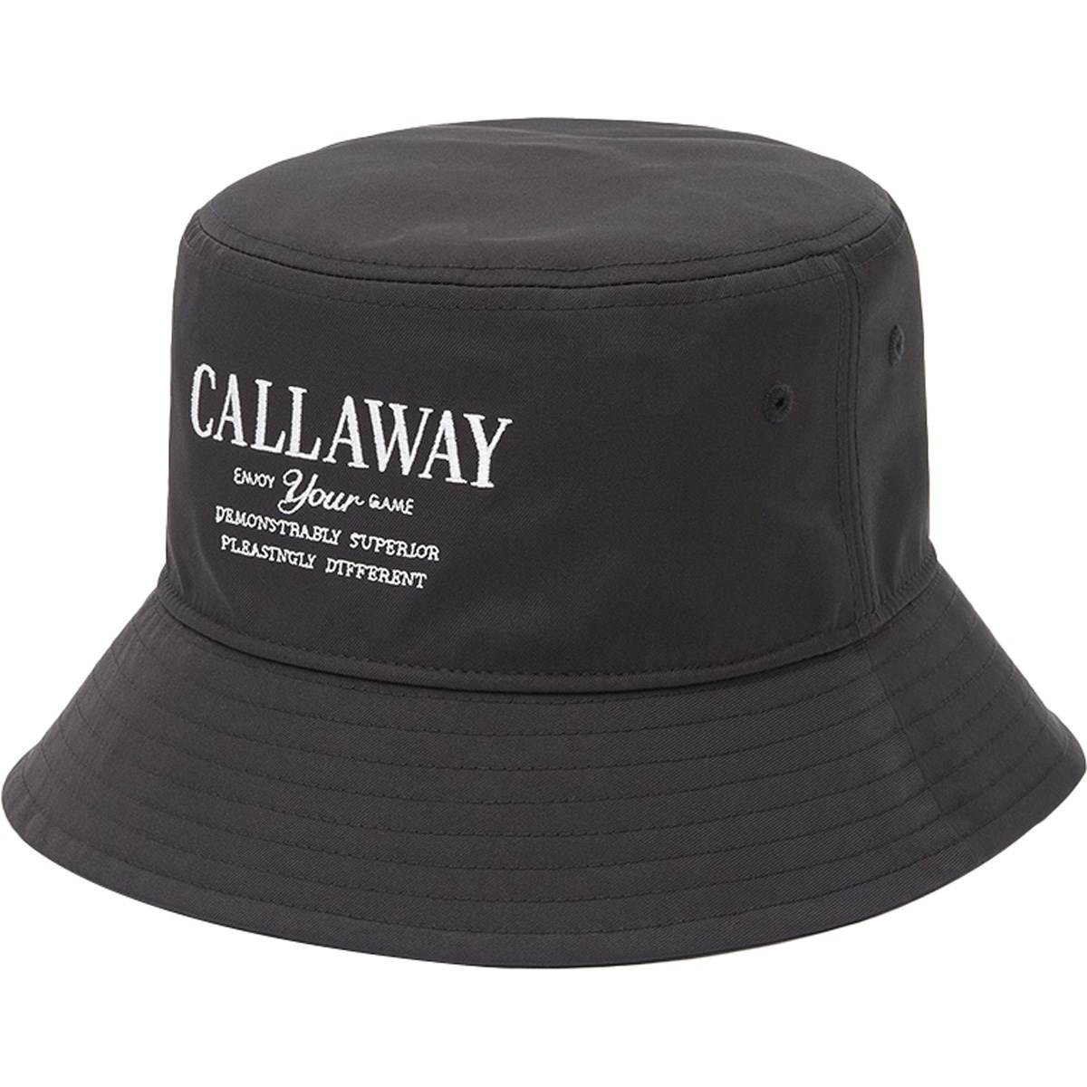 フロントにアパレル連動ロゴ刺繍を施したバケットハット。