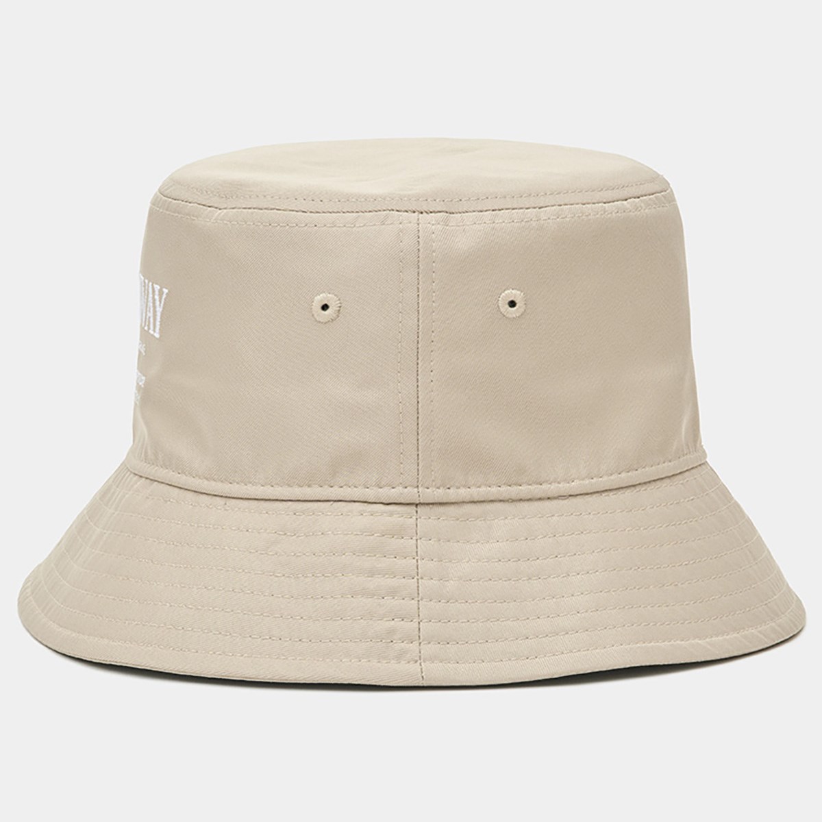 フロントにアパレル連動ロゴ刺繍を施したバケットハット。