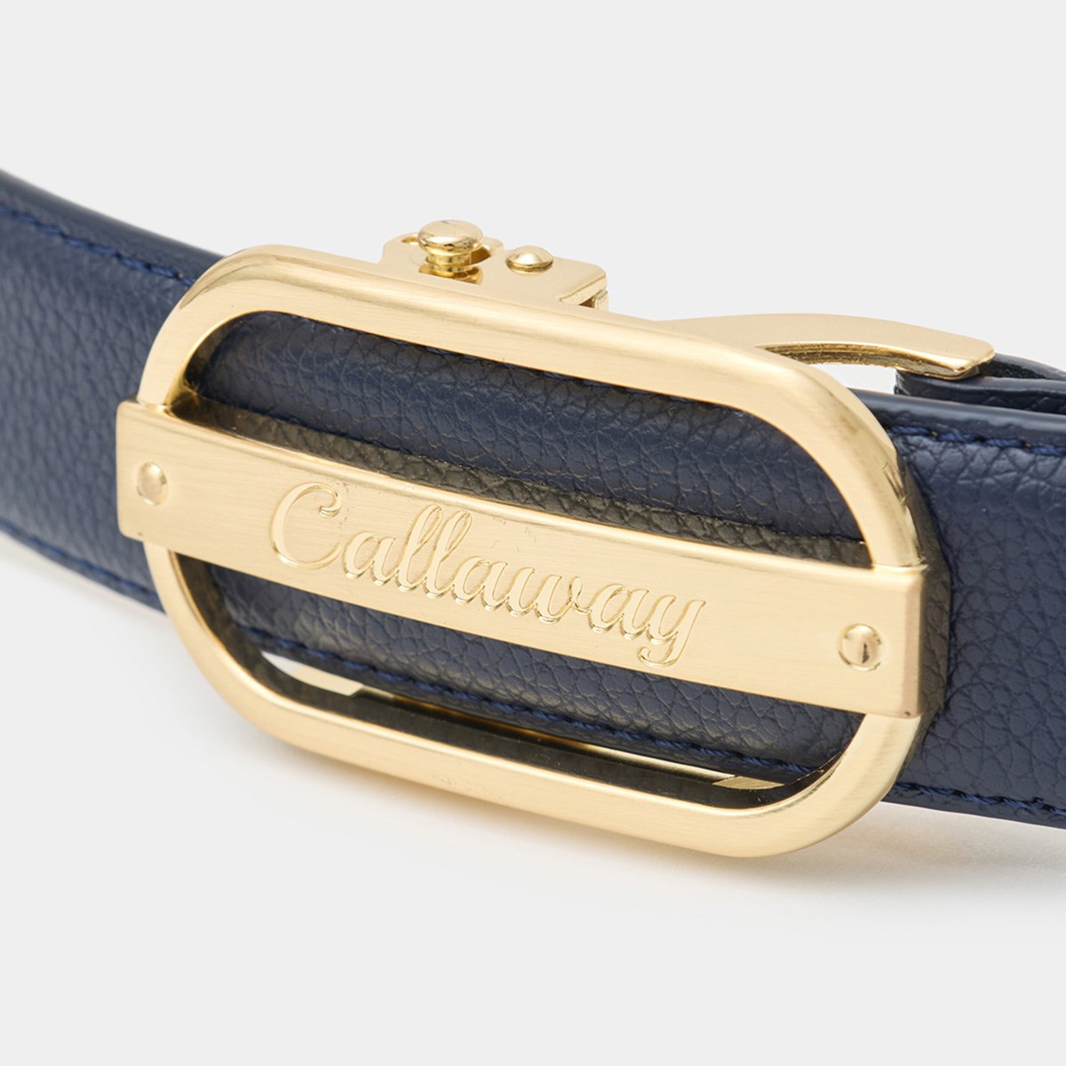 楕円型のバックルとCALLAWAY筆記体ロゴがアクセントになったセレーションベルト。
