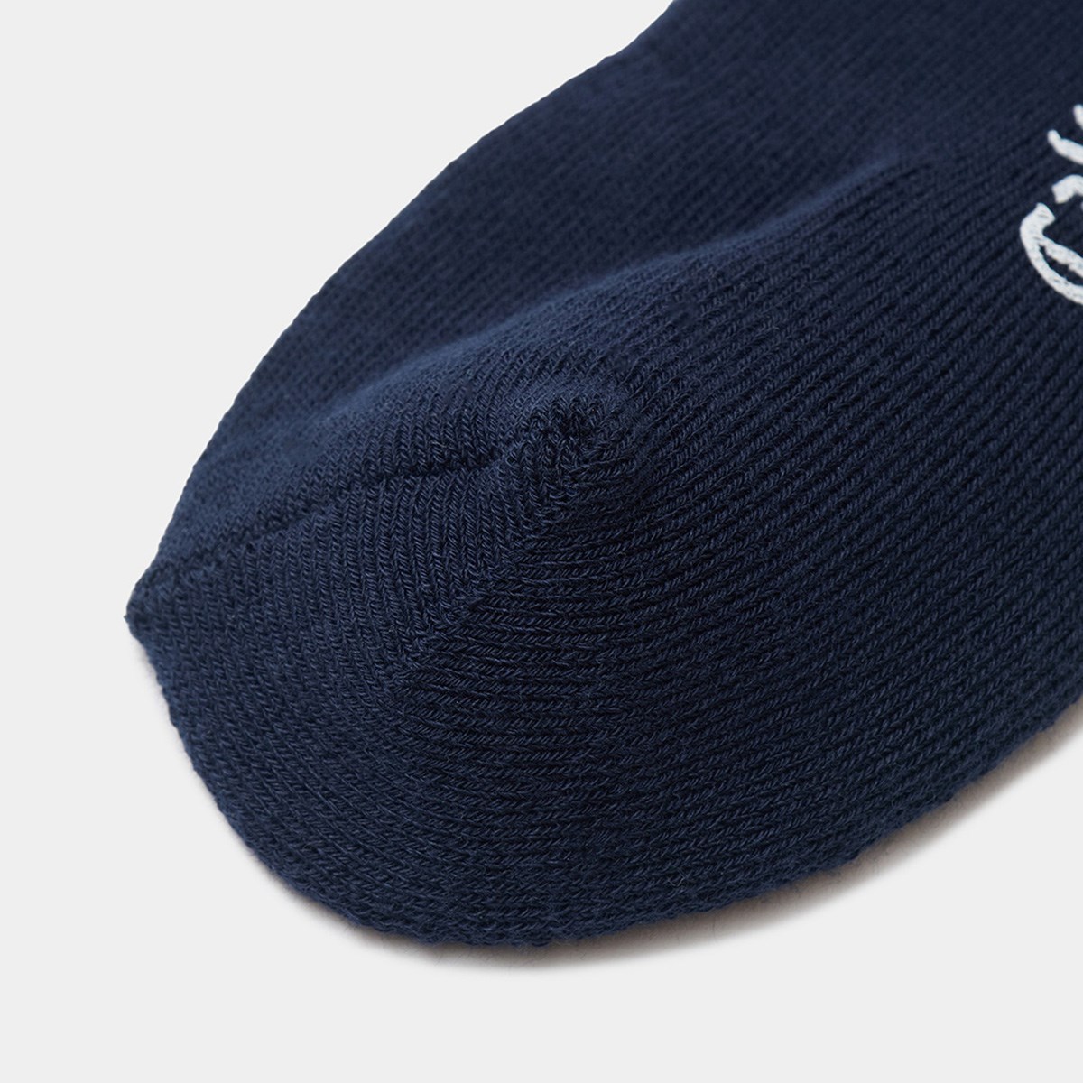 シンプルなロゴ使いのルーズ編みミドルソックス。