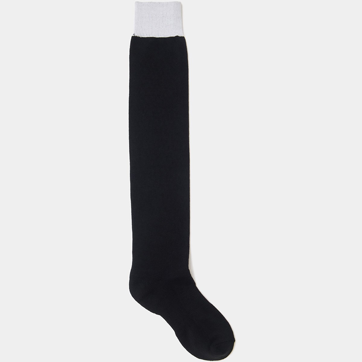 シンプルなロゴ使いとラインがコーディネートに合わせやすいデザインのニーハイソックス。