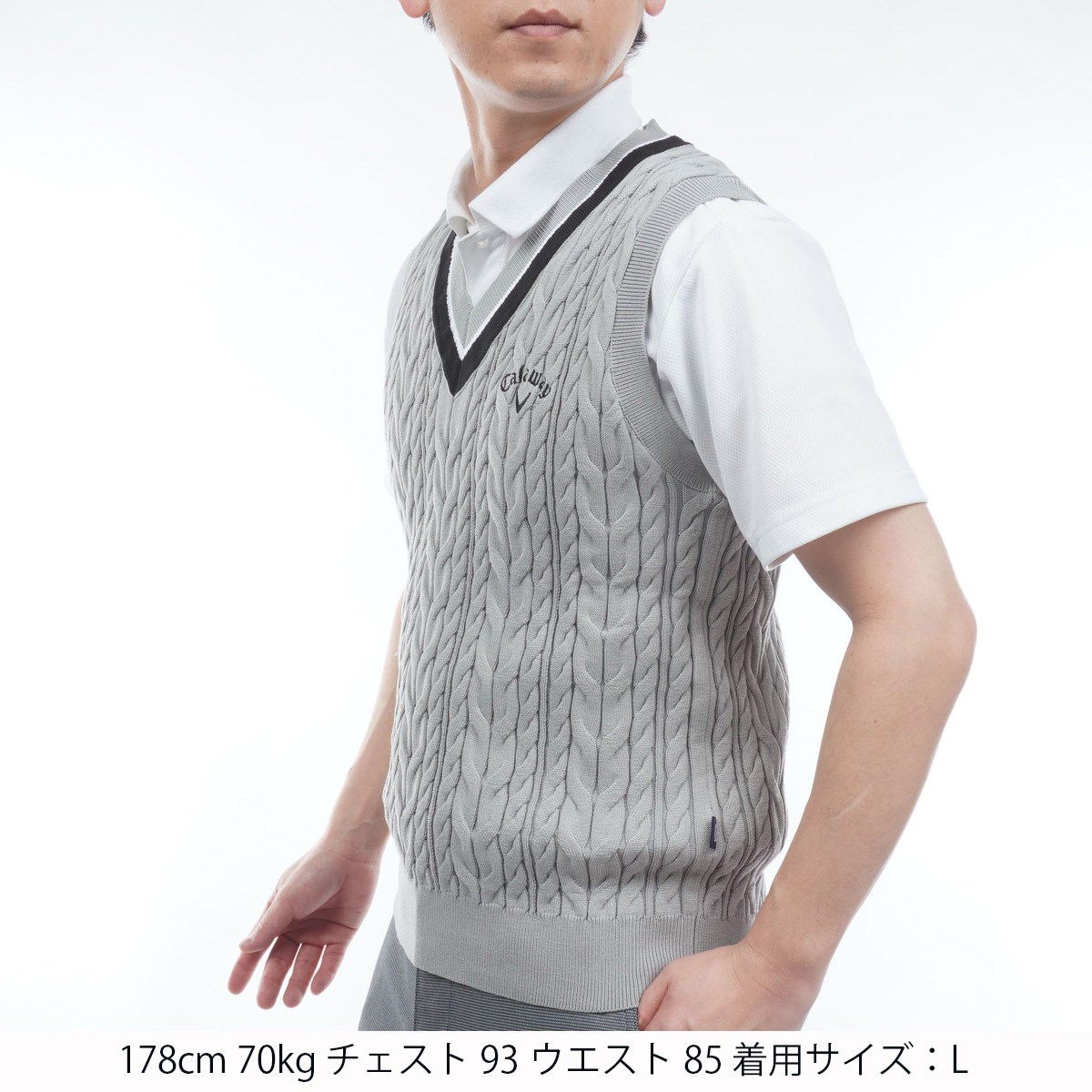 キャロウェイゴルフ Callaway Golf ミニケーブル編みVネックニットベスト 3L グレー 1020