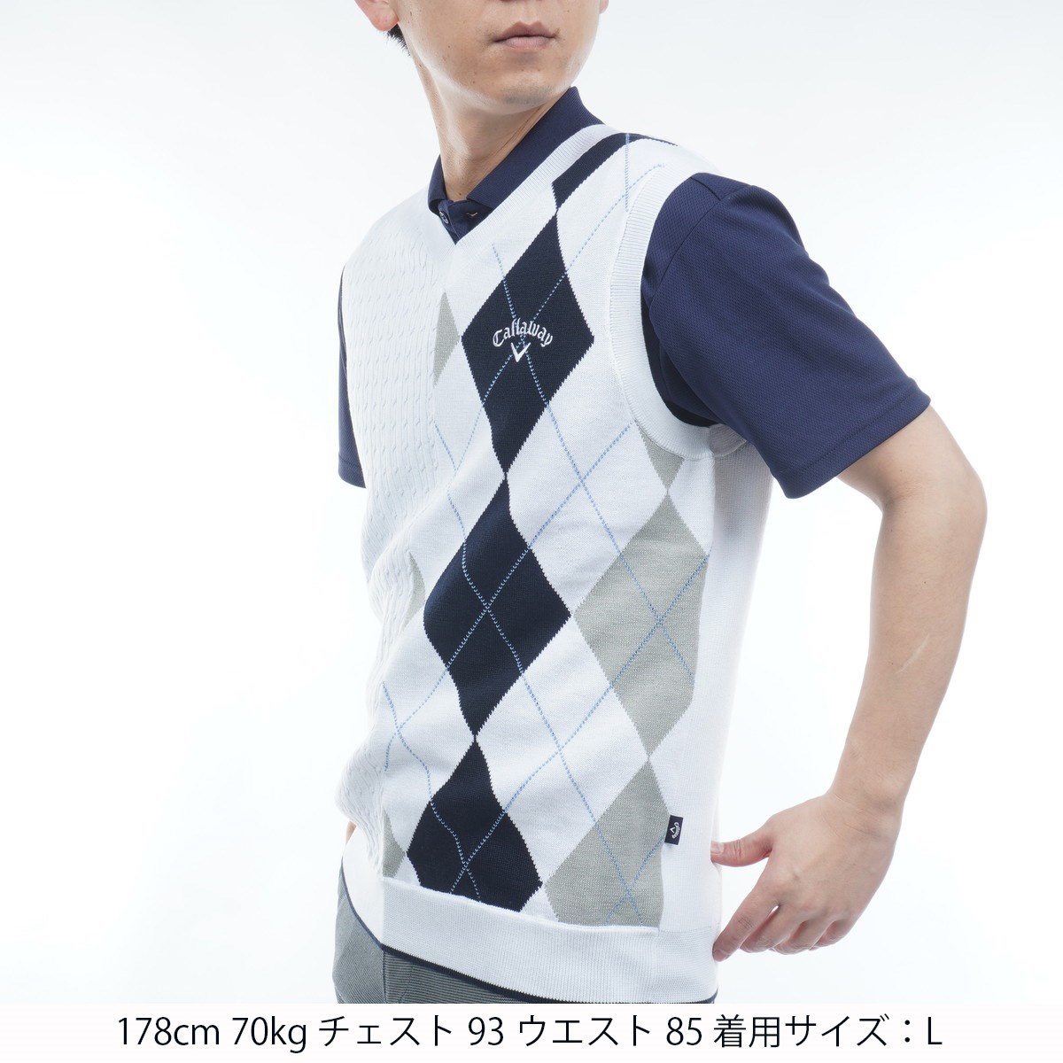 キャロウェイゴルフ Callaway Golf アーガイル&ケーブル編みコンビVネックニットベスト M ホワイト 1030