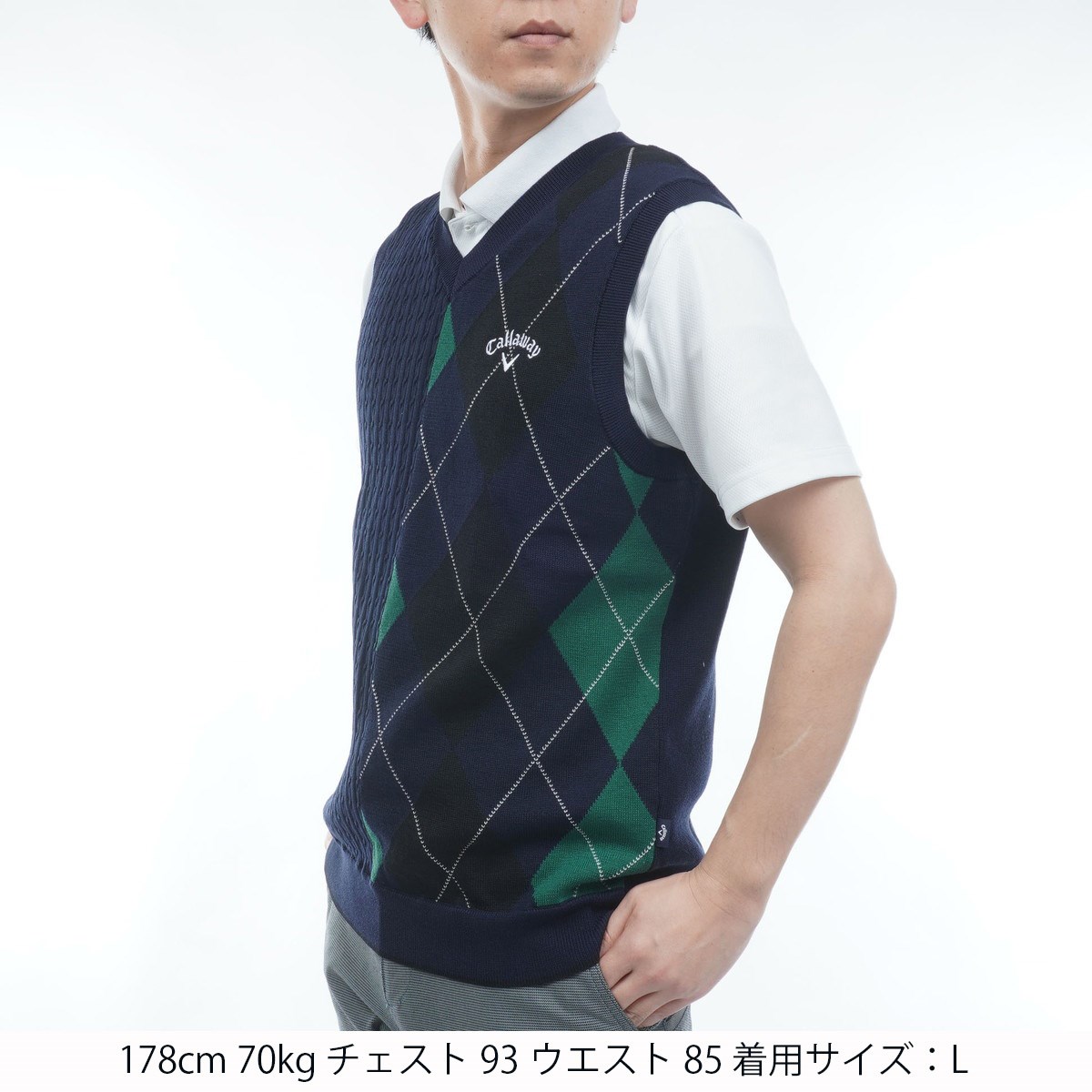 キャロウェイゴルフ Callaway Golf アーガイル&ケーブル編みコンビVネックニットベスト L ネイビー 1120