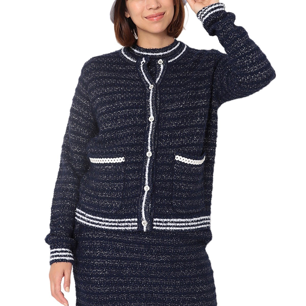 毛足の長い糸とラメ糸のコンビネーションで編み上げた上質なニットカーディガンです。