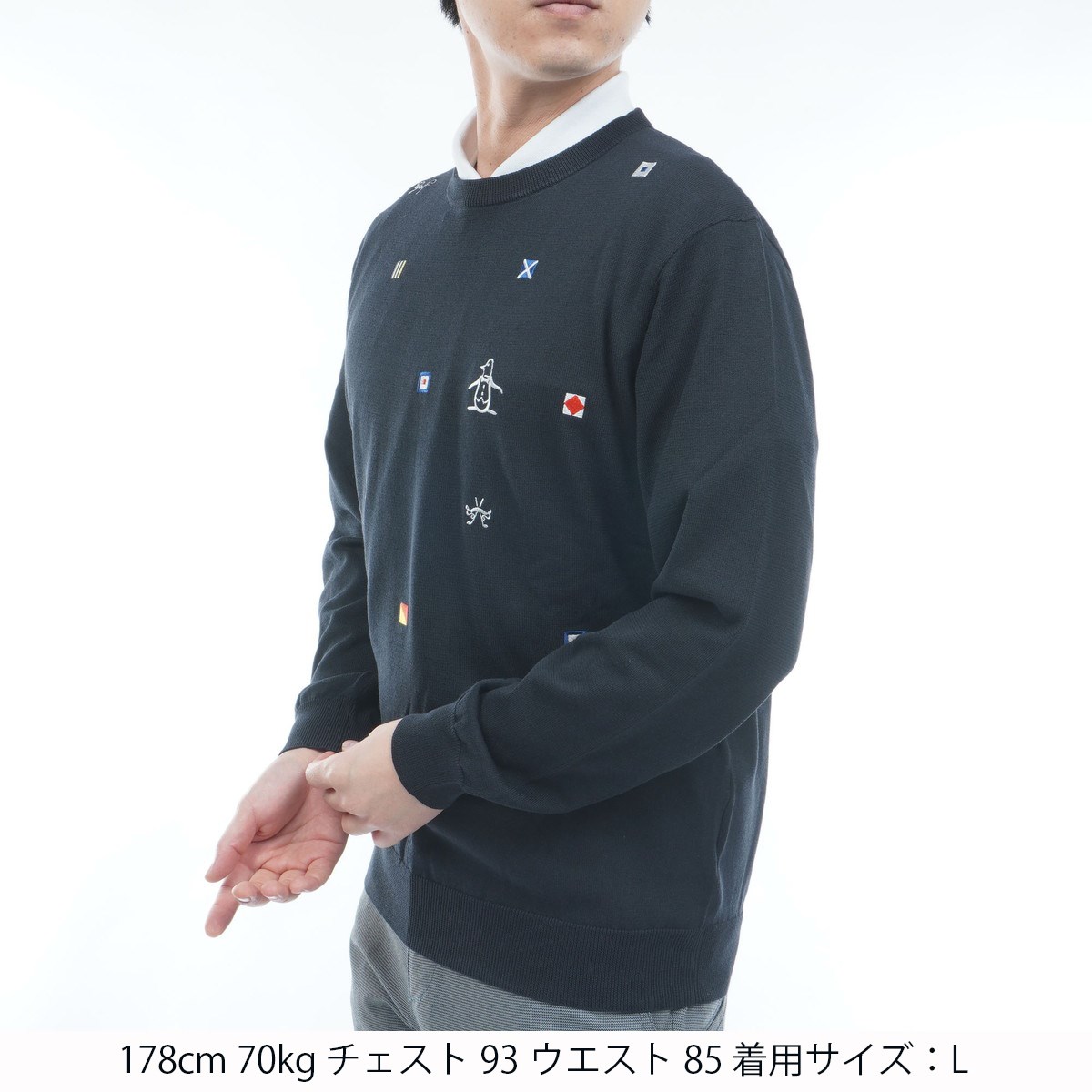 マンシングウェア Munsingwear SEASON フラッグモチーフ刺繍 クルーネックセーター L ネイビー 00