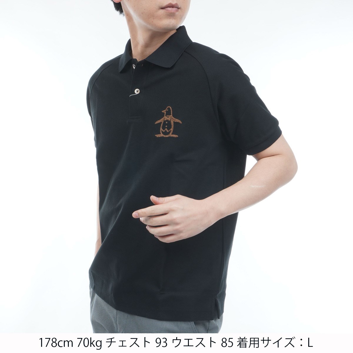 マンシングウェア Munsingwear 裏鹿の子 ビッグロゴ 半袖ポロシャツ LL ブラック 00