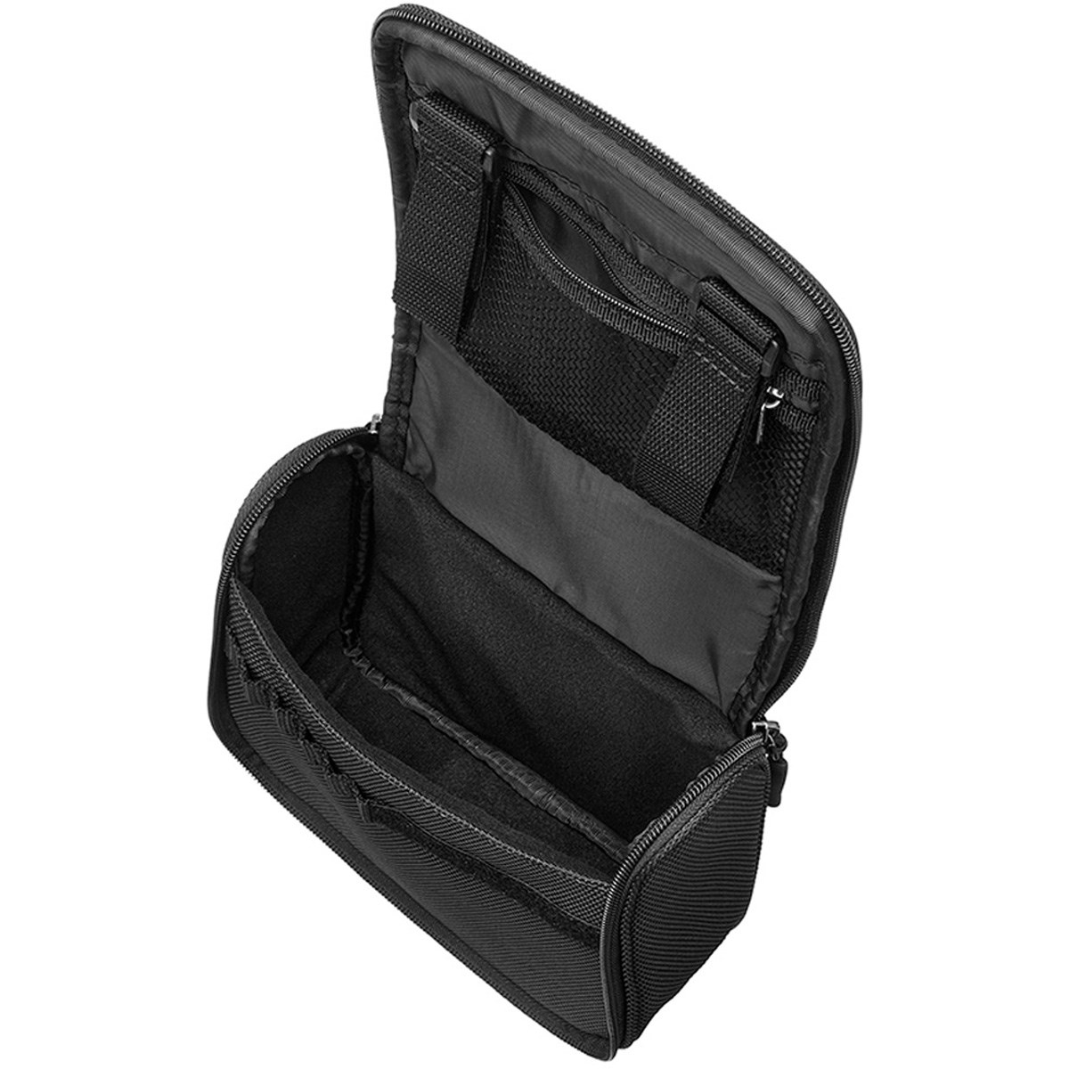 ティー挿しやグローブホルダー、マーカーやグリーンフォークなどを入れられるメッシュポケット付きで、メインポケットは起毛裏地を採用し距離計やスマートフォン・ボール等も入れられるサイズ感。