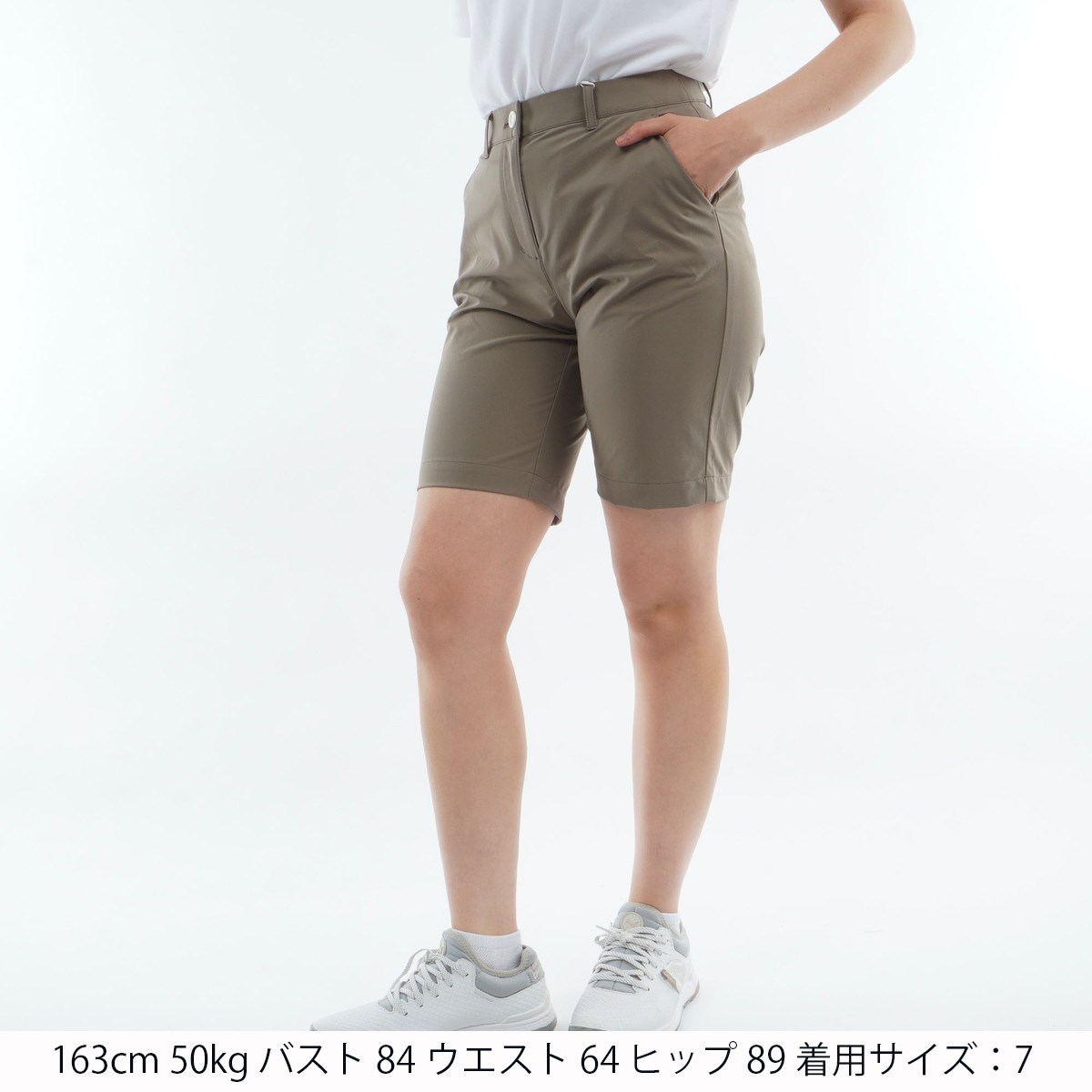 7:ウエスト(A)67、ウエスト(B)82、ヒップ89、股上25.7、股下22、わたり幅30.5