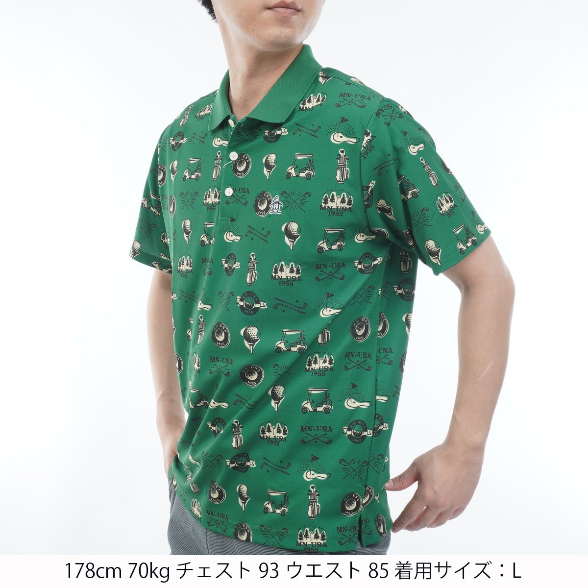 マンシングウェア Munsingwear ストレッチ ゴルフモチーフプリント半袖ポロシャツ LL グリーン 00