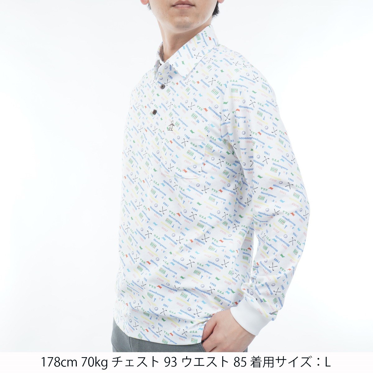 マンシングウェア Munsingwear ストレッチ SUNSCREENロゴグラフィックプリント長袖ポロシャツ M ホワイト 00のレビュー